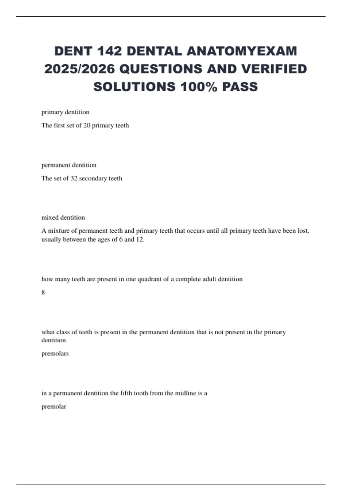 DENT 142 DENTAL ANATOMYEXAM 2025/2026 QUESTIONS AND VERIFIED SOLUTIONS 100% PASS