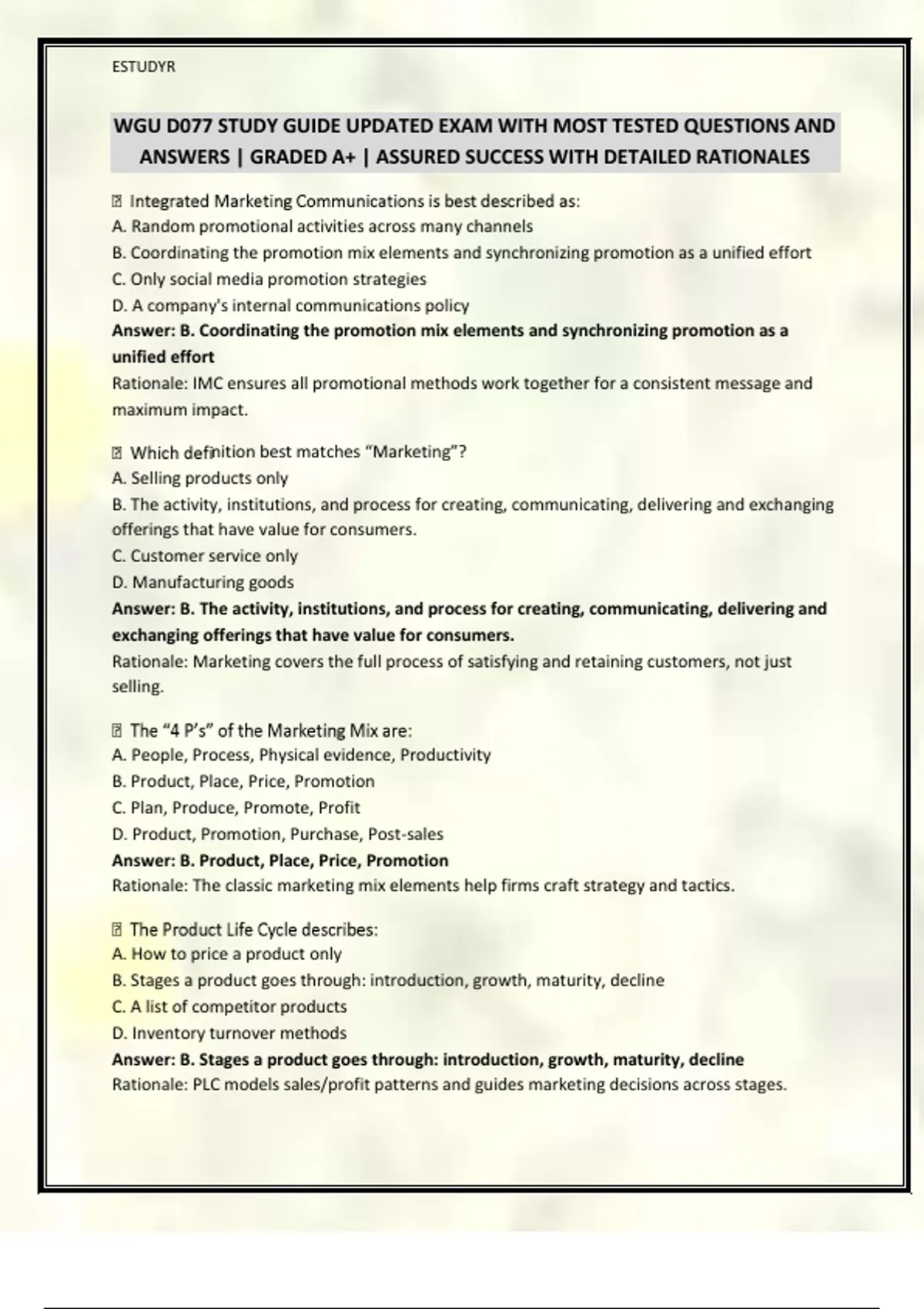WGU D077 STUDY GUIDE UPDATED EXAM WITH MOST TESTED QUESTIONS AND