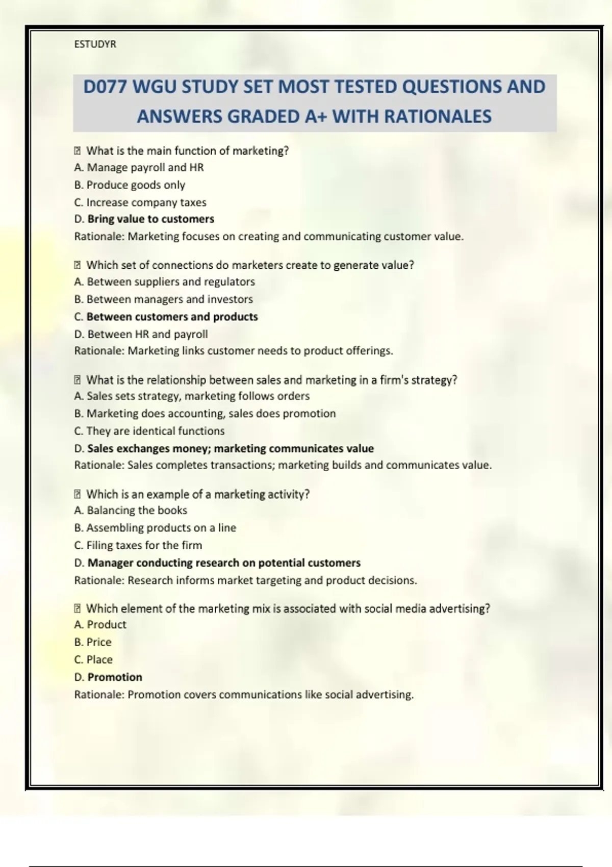 D077 WGU STUDY SET MOST TESTED QUESTIONS AND