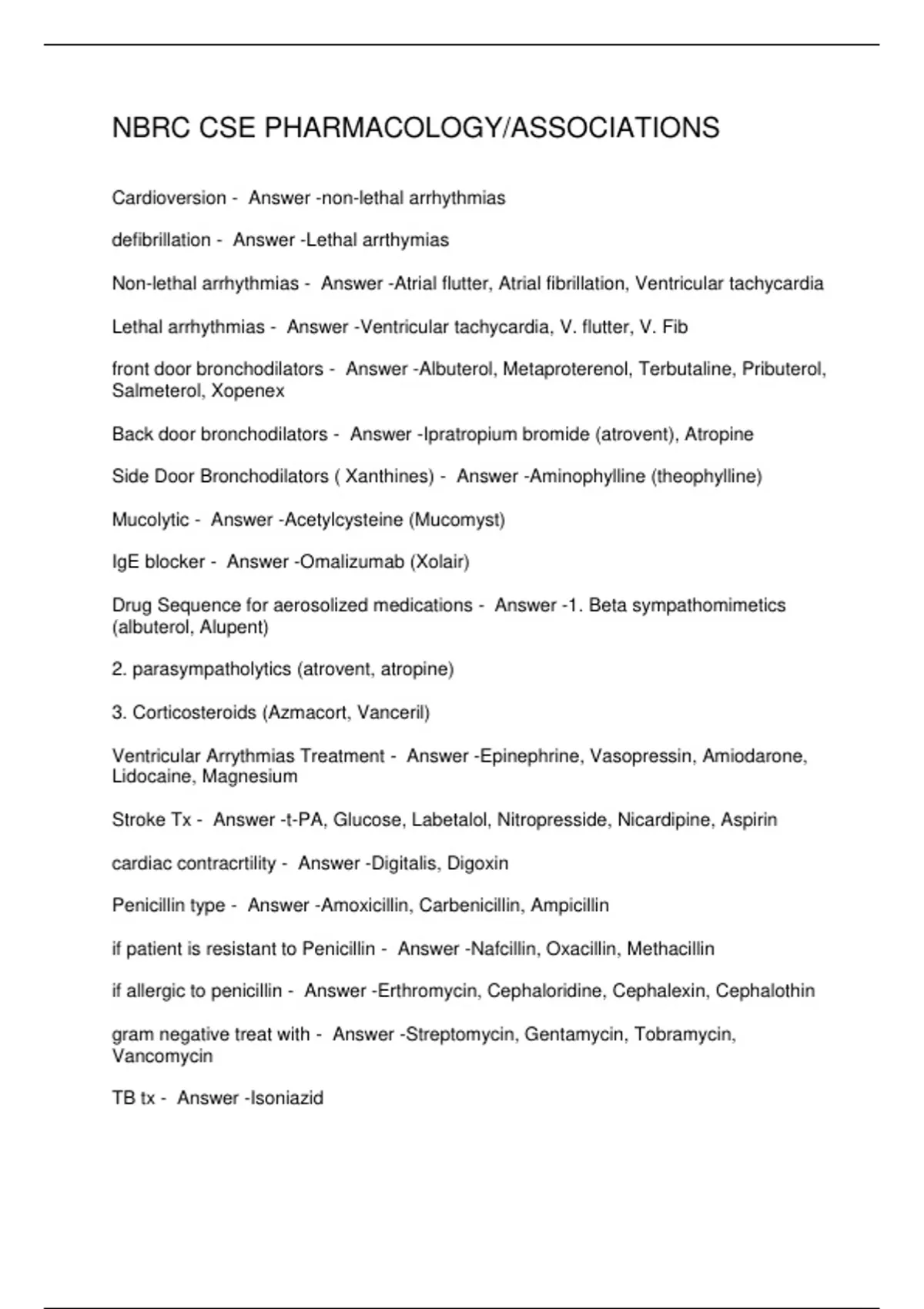 NBRC CSE PHARMACOLOGY/ASSOCIATIONS