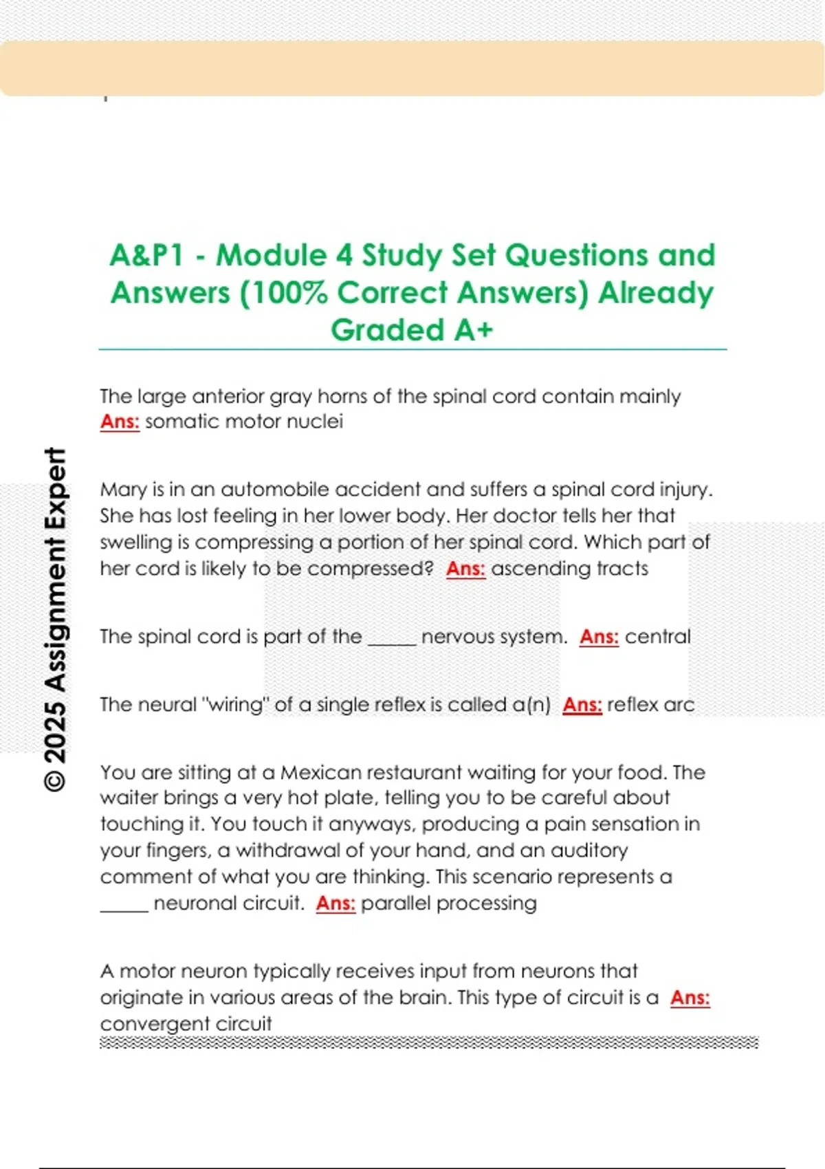 A&P1 - Module 4 Study Set Questions and Answers (100% Correct Answers) Already Graded A+