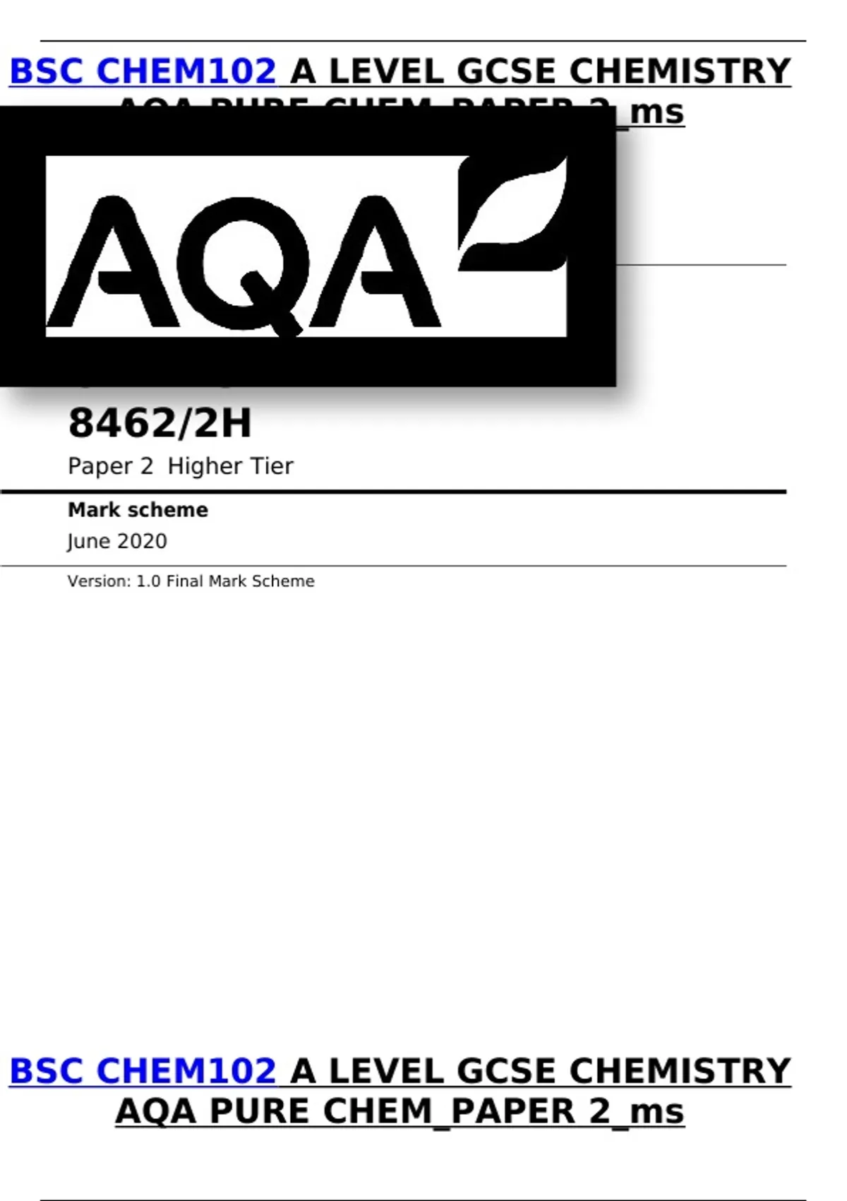 ,BSC CHEM102 A LEVEL GCSE CHEMISTRY