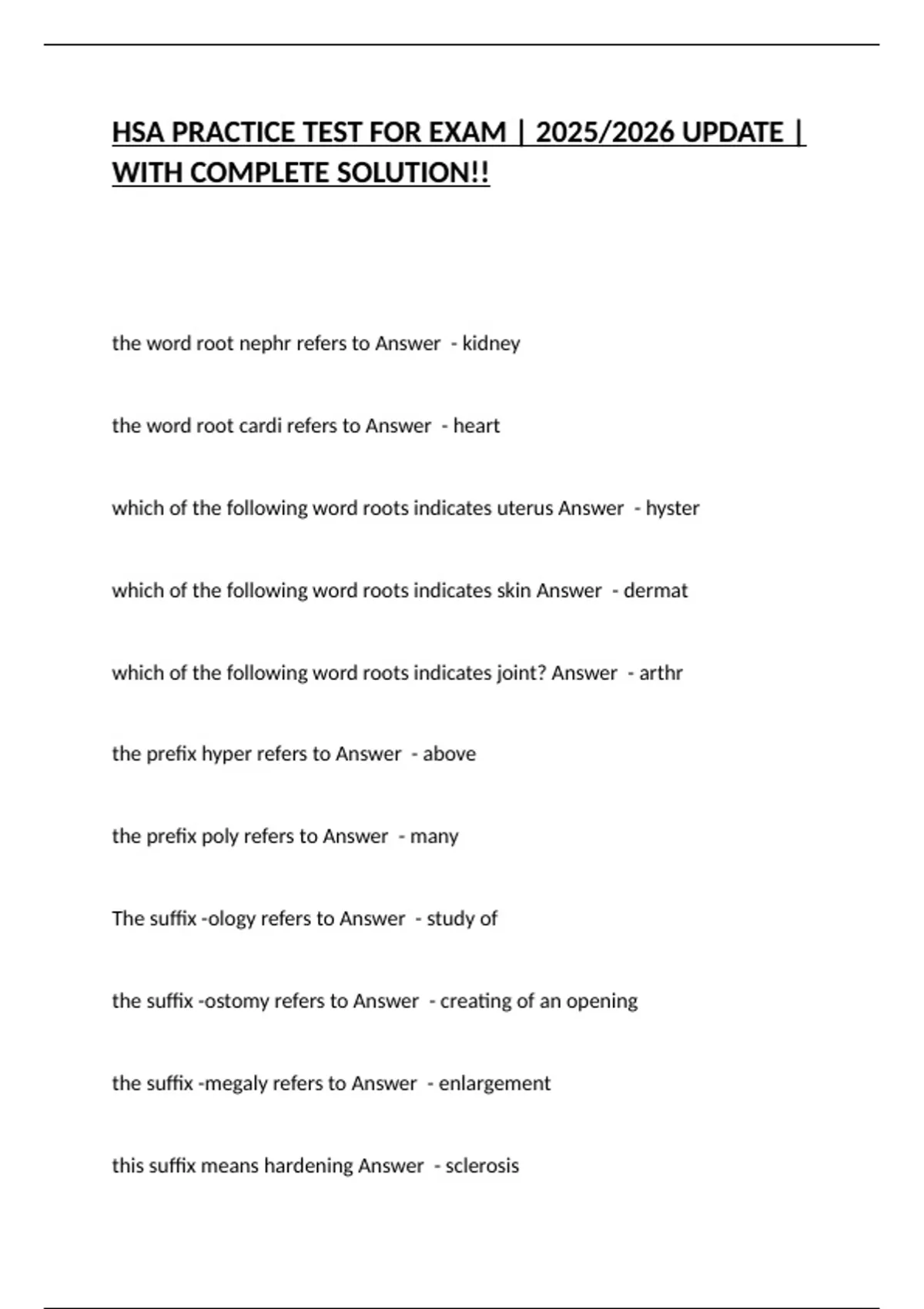 this suffix means hardening Answer - sclerosis