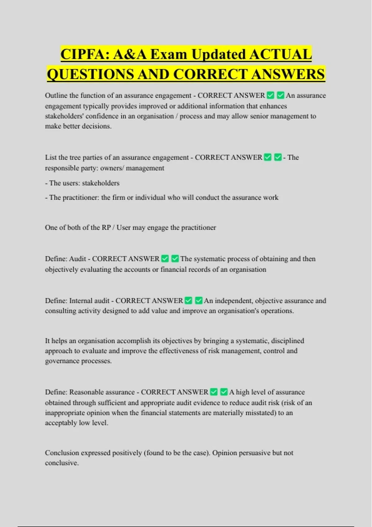 Define: Reasonable assurance - CORRECT ANSWER A high level of assurance