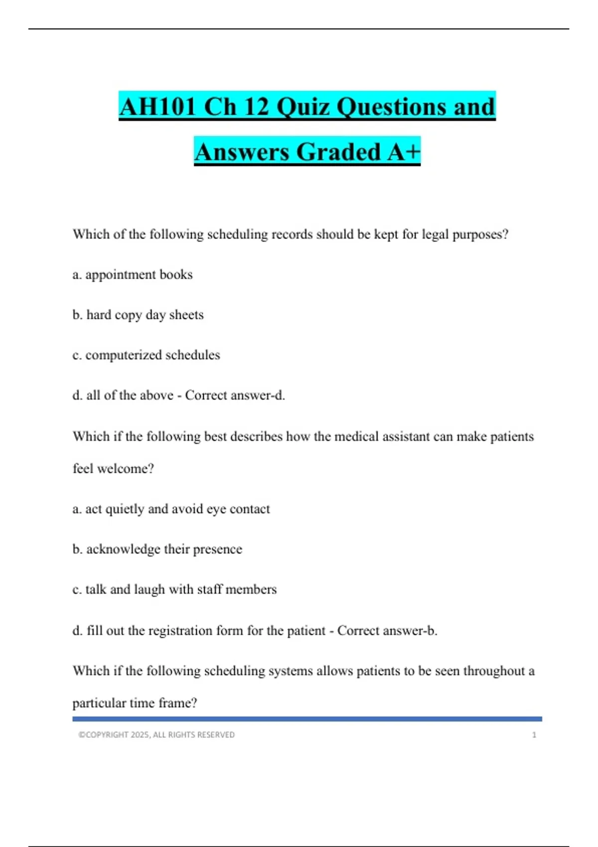 AH101 Ch 12 Quiz Questions and Answers Graded A+