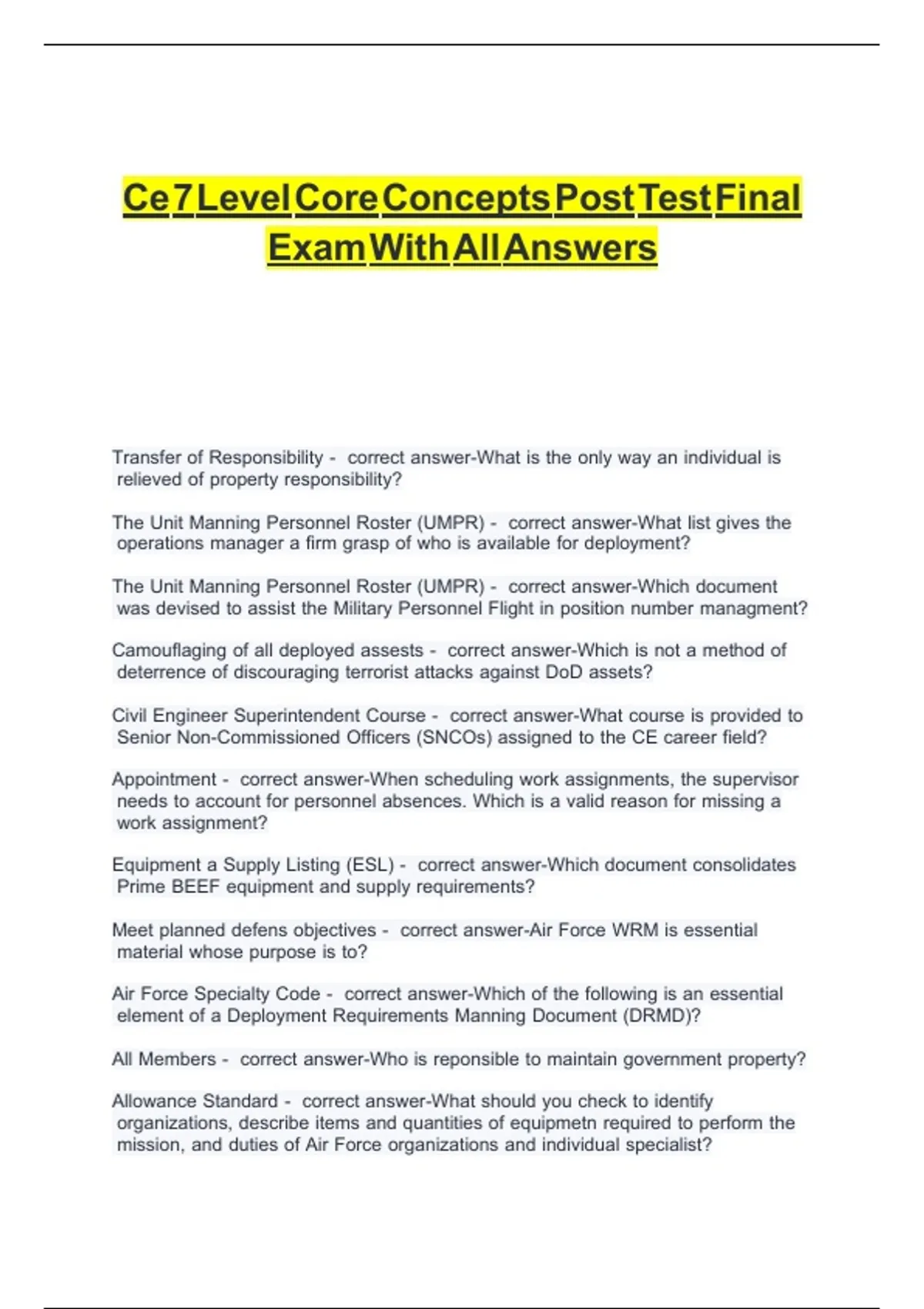 CE 7 LEVEL CORE CONCEPTS POST TEST FINAL EXAM WITH ALL ANSWERS