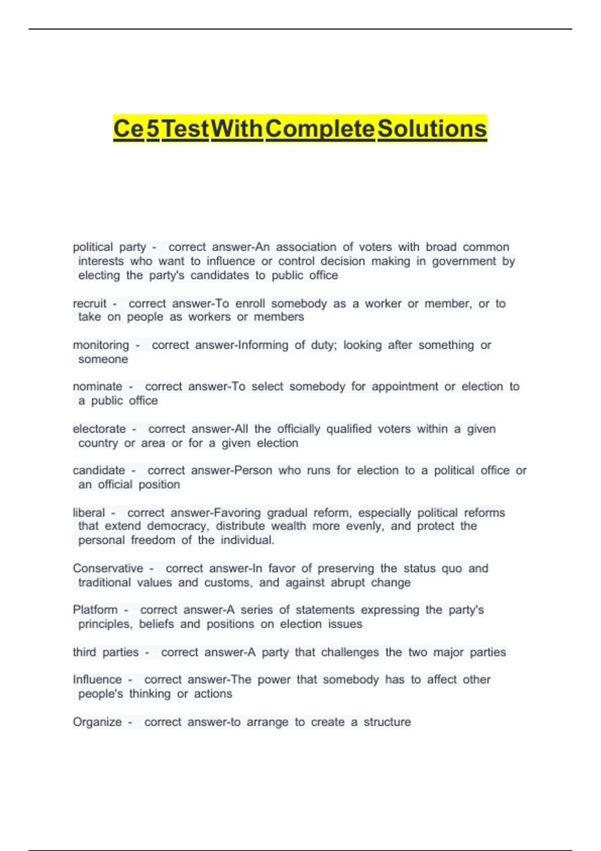 Ce 5 Test With Complete Solutions b b b b b