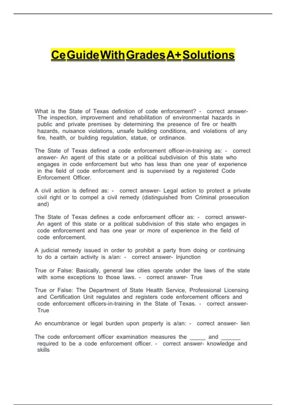 CE GUIDE WITH GRADES A+ SOLUTIONS.