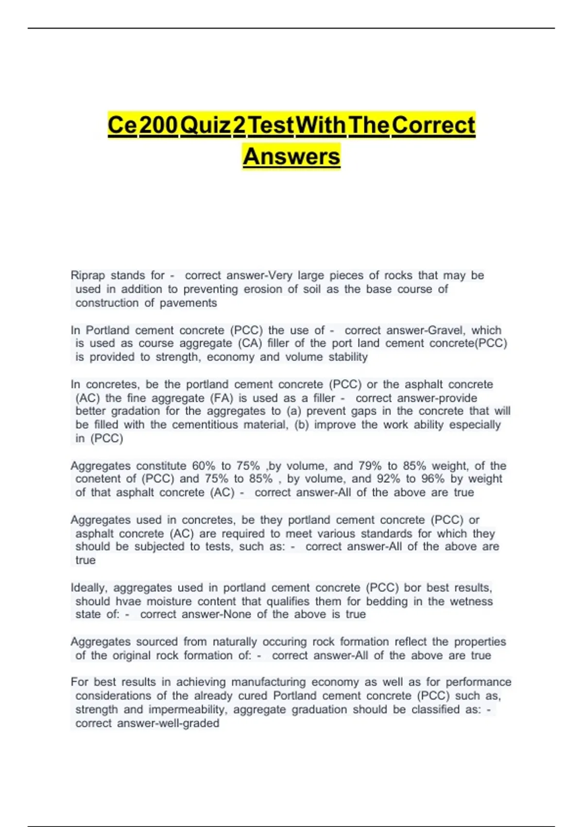 CE 200 QUIZ 2 TEST WITH THE CORRECT ANSWERS