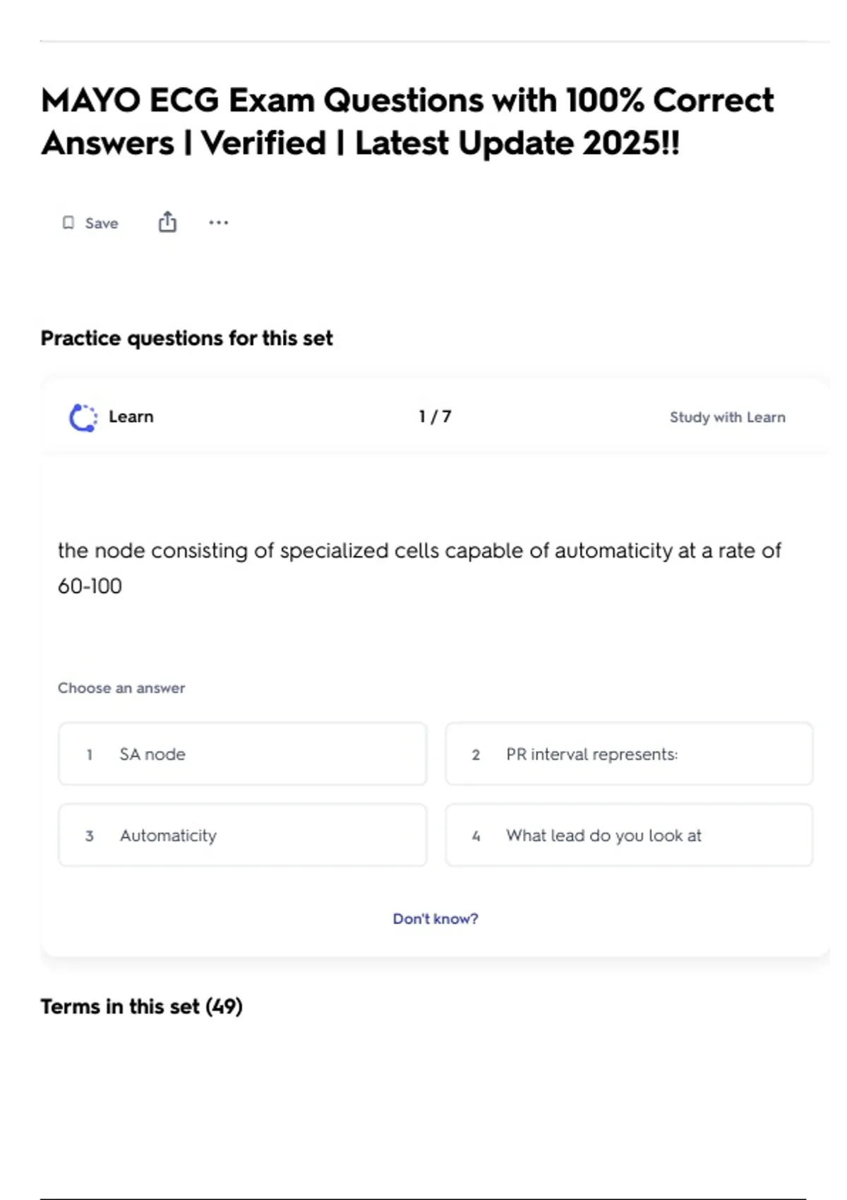 MAYO ECG Exam Questions with 100% Correct