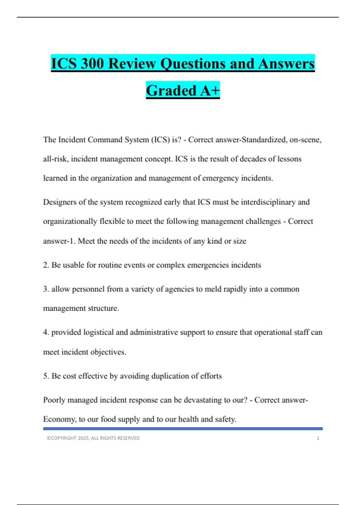 ICS 300 Review Questions and Answers Graded A+