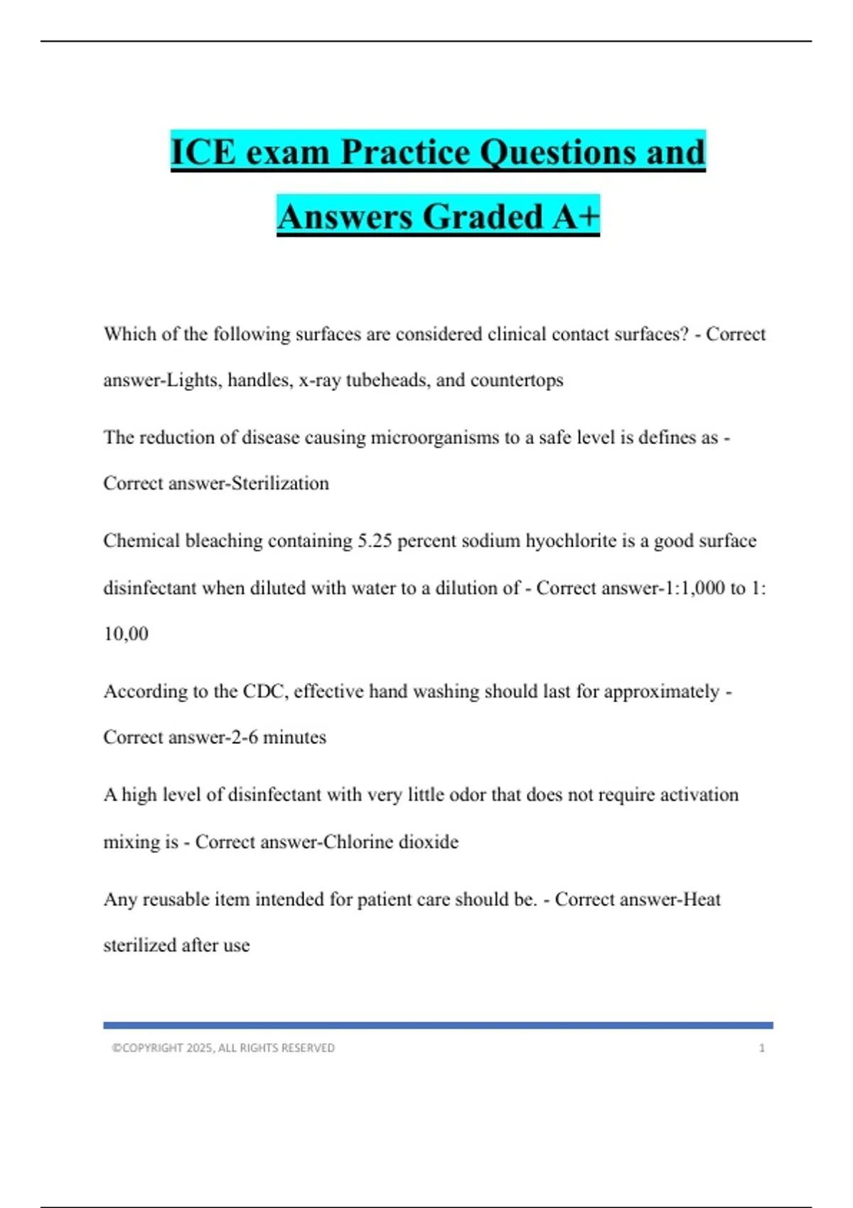ICE exam Practice Questions and Answers Graded A+