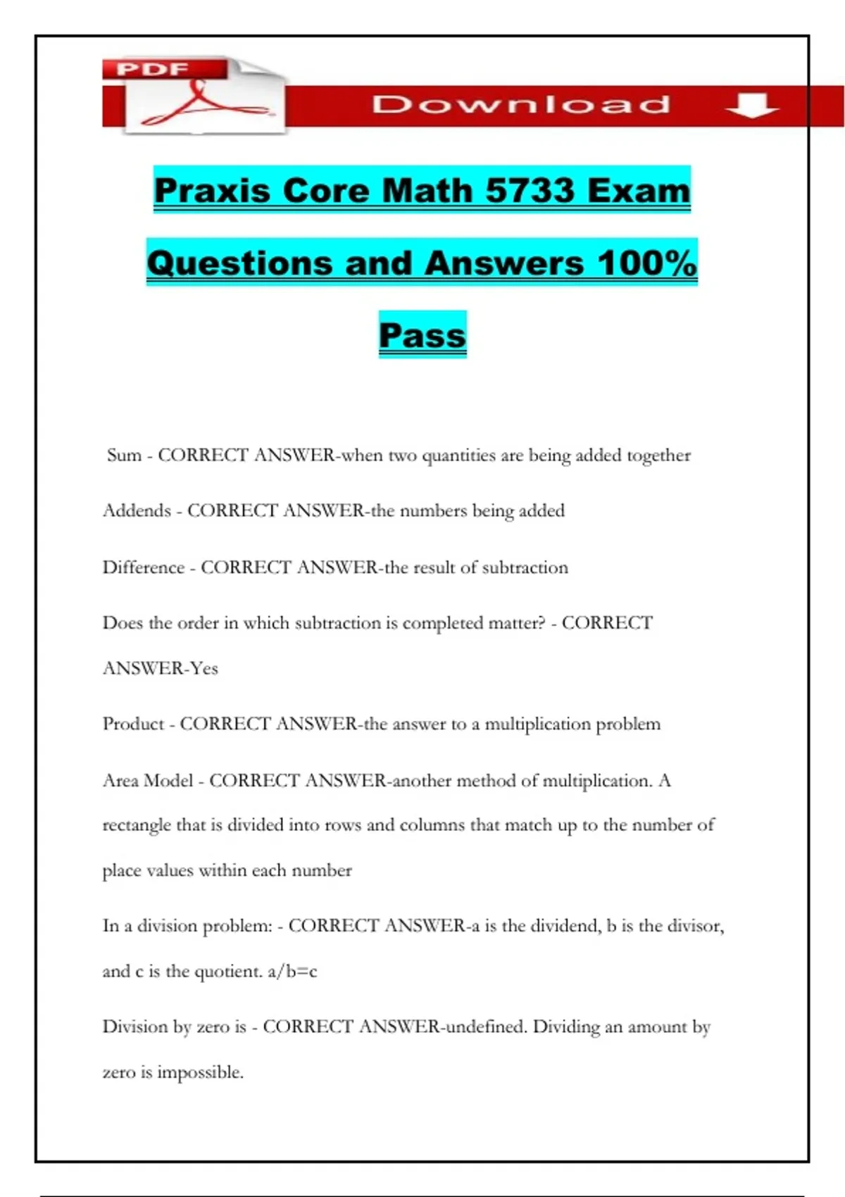 Praxis Core Math 5733 Exam