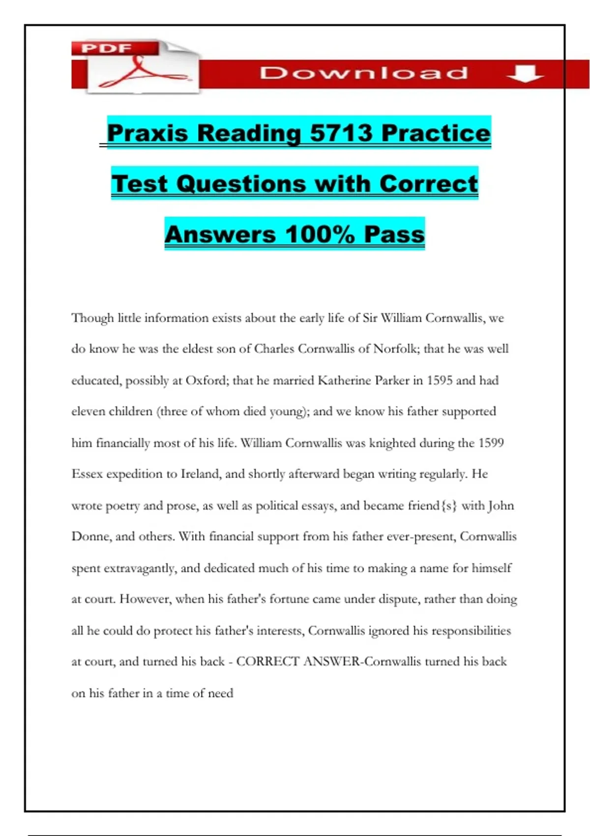 Praxis Reading 5713 Practice