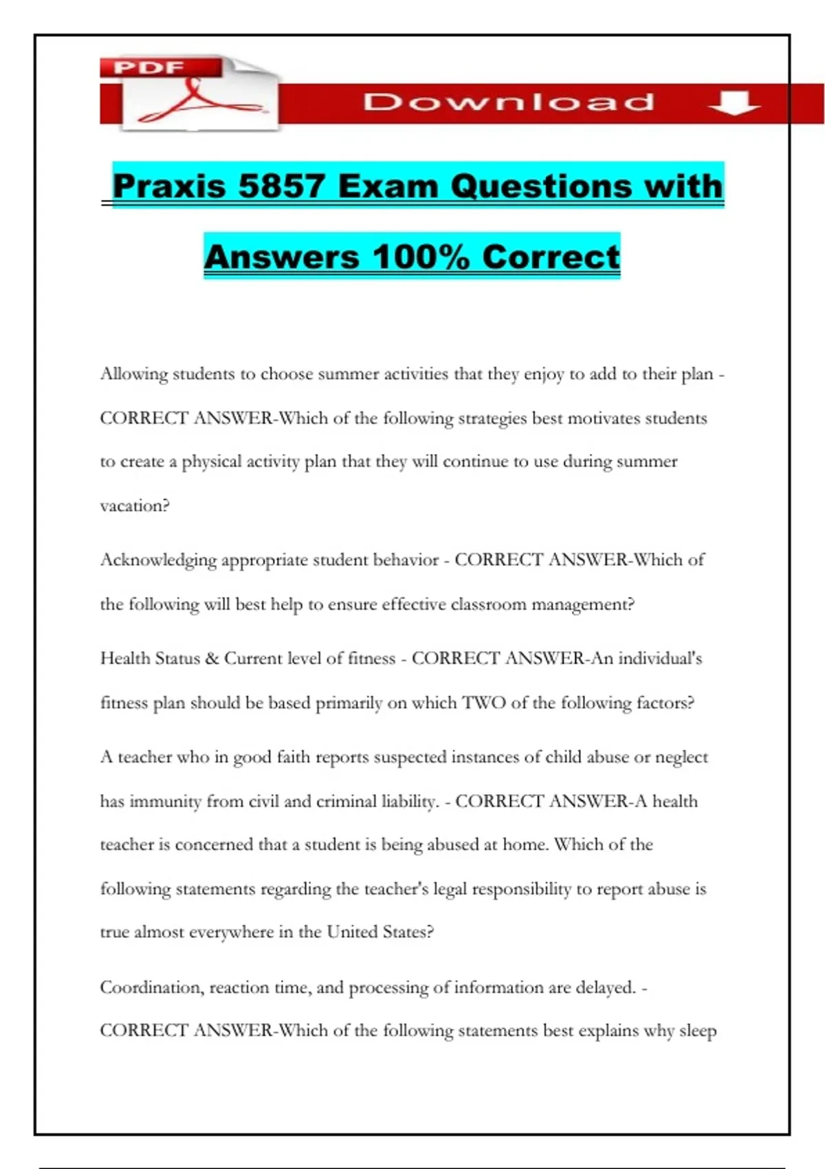 Praxis 5857 Exam Questions with Answers 100% Correct