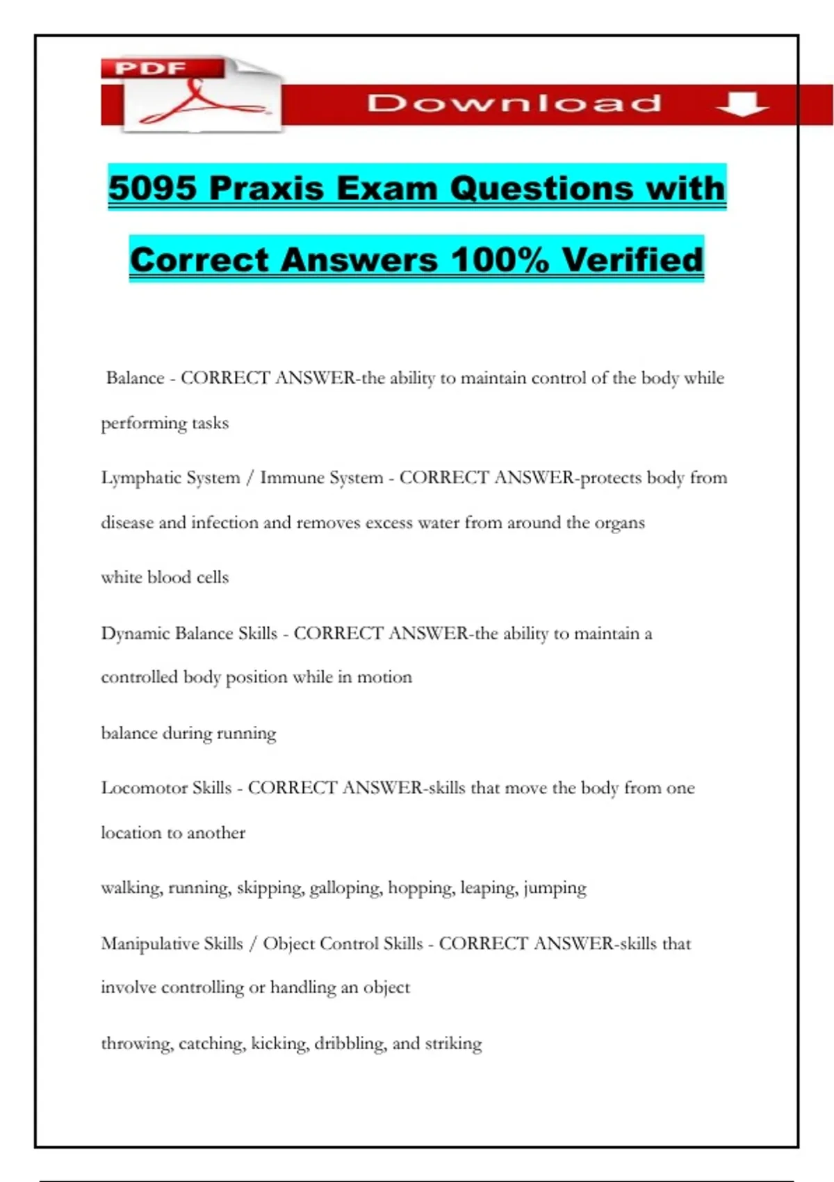 5095 Praxis Exam Questions with Correct Answers 100% Verified