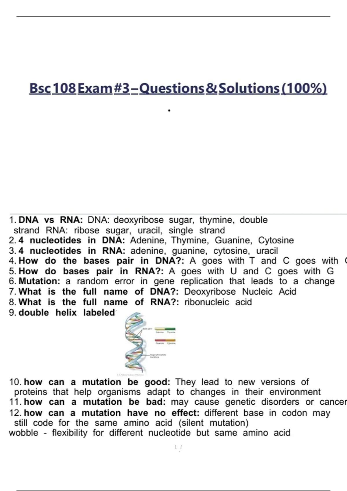 1. DNA bgvs bgRNA:bgDNA:bgdeoxyribose bgsugar, bgthymine, bgdouble