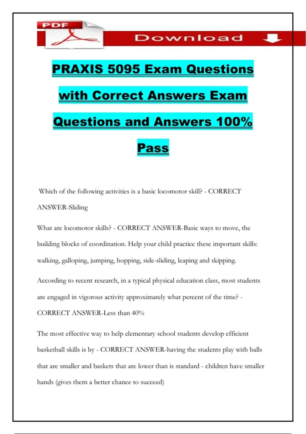PRAXIS 5095 Exam Questions
