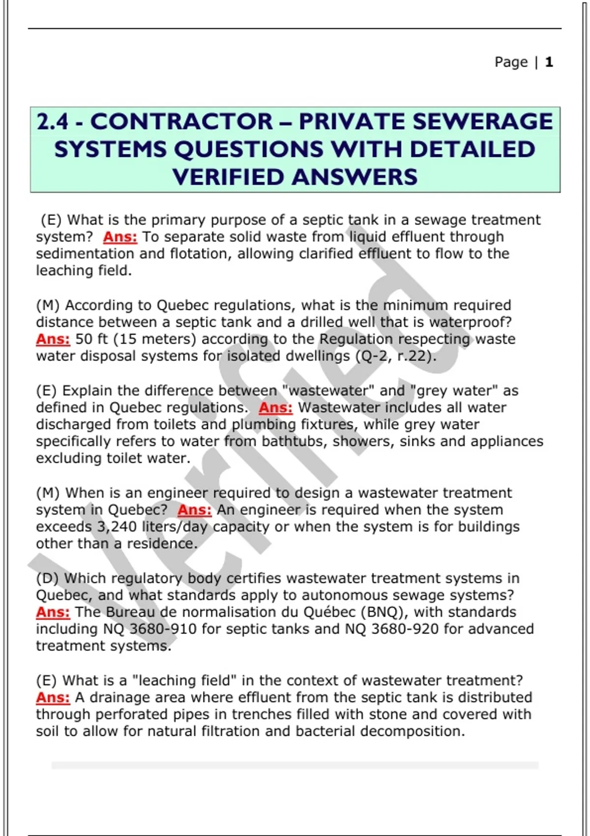 defined in Quebec regulations. Ans: Wastewater includes all water