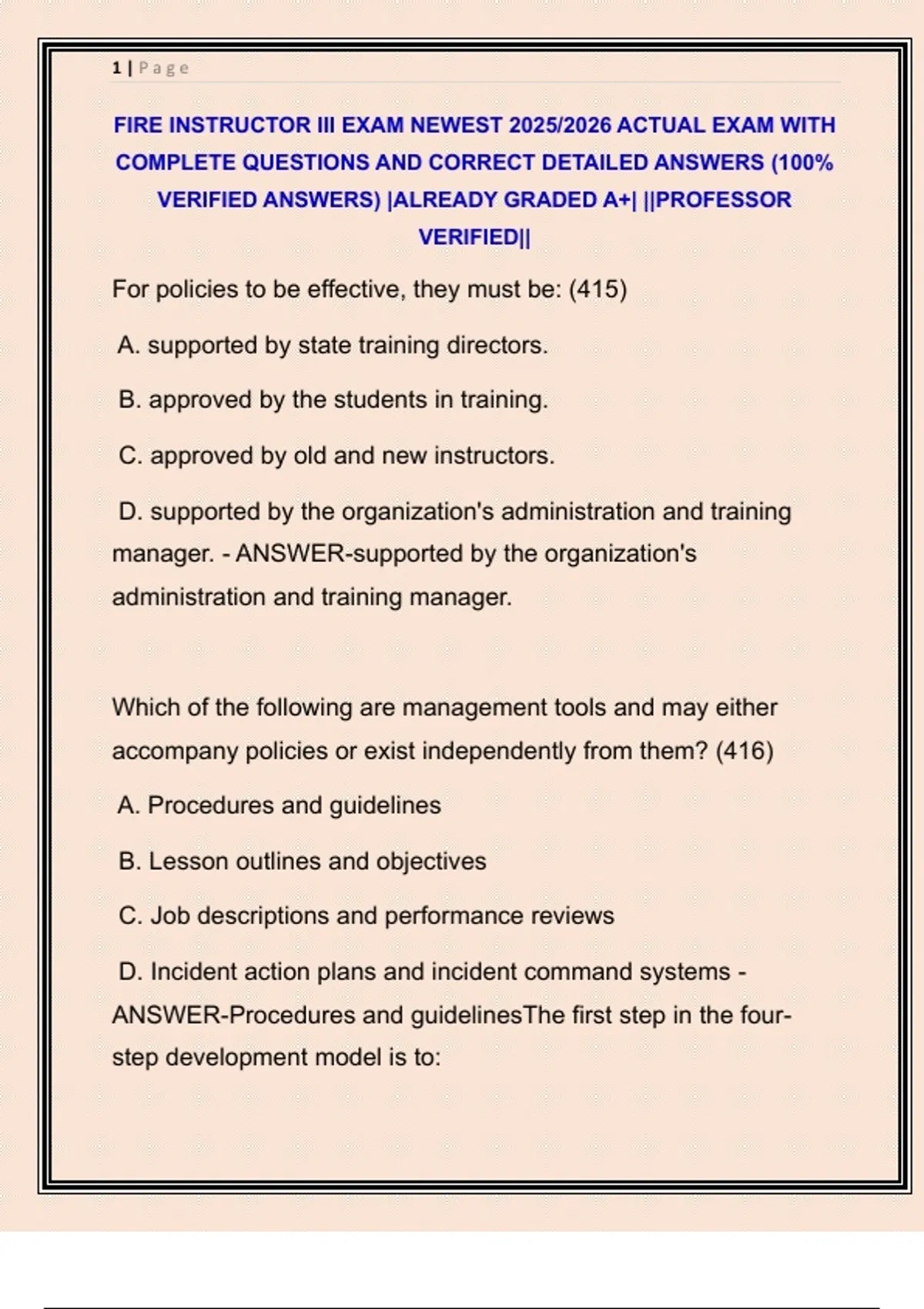 FIRE INSTRUCTOR III EXAM NEWEST 2025/2026 ACTUAL EXAM WITH