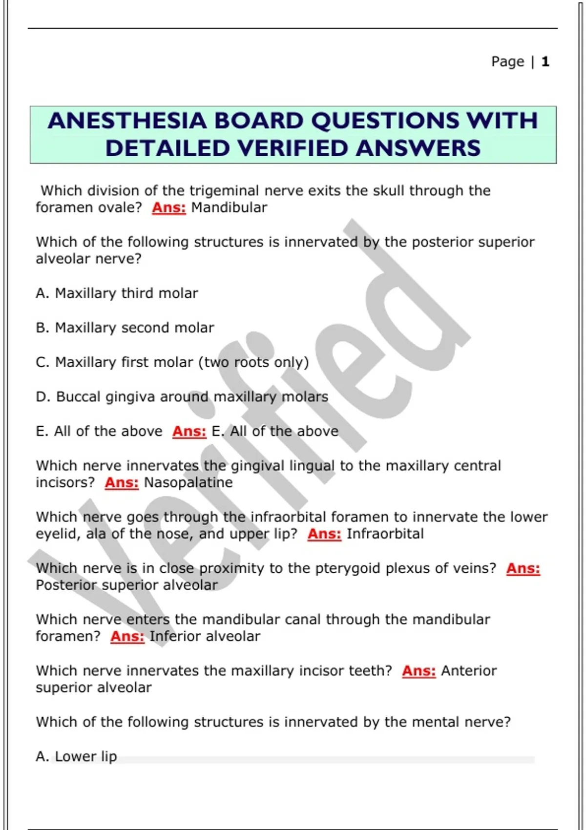 ANESTHESIA BOARD QUESTIONS WITH