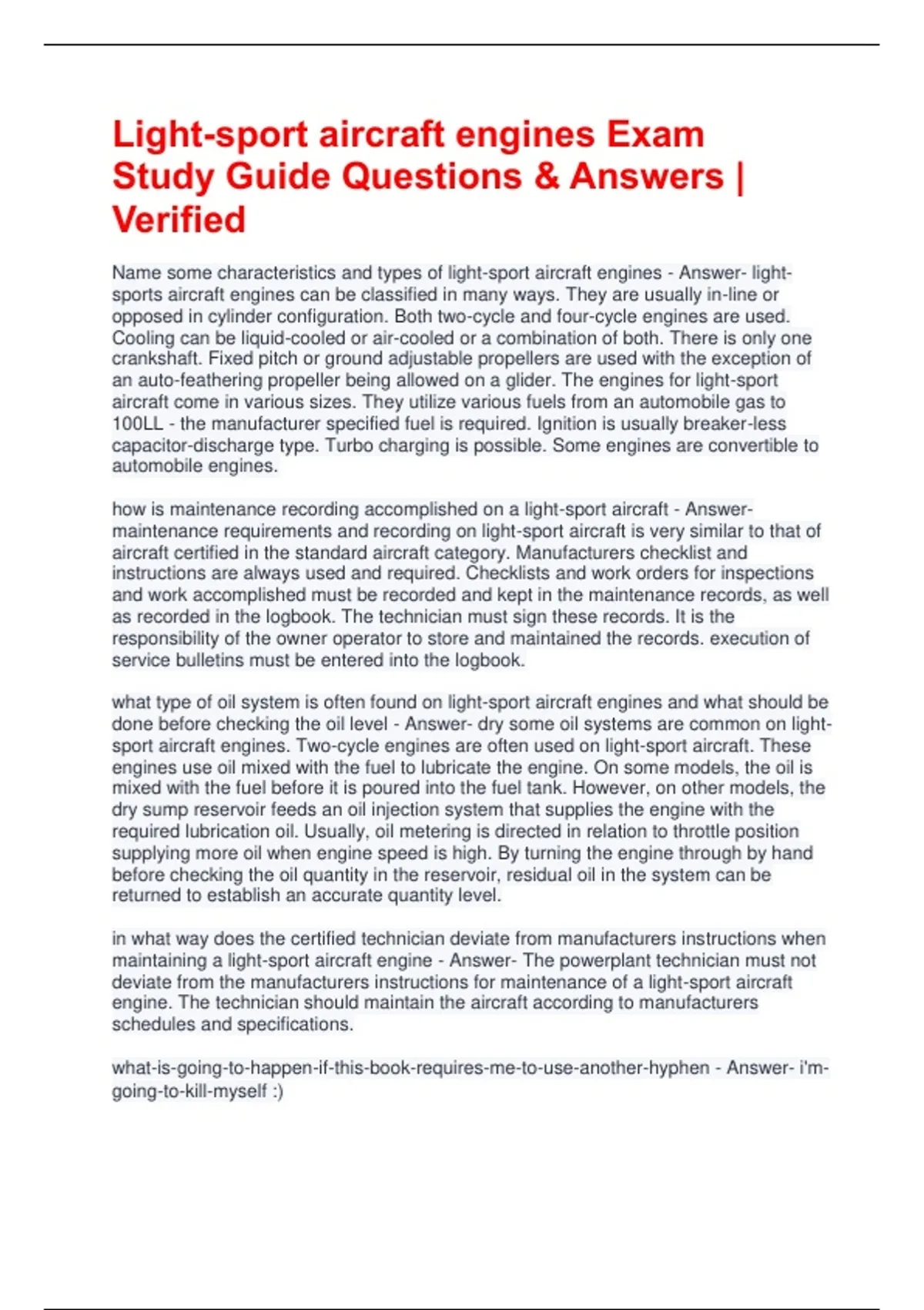 Name some characteristics and types of light-sport aircraft engines - Answer- light-
