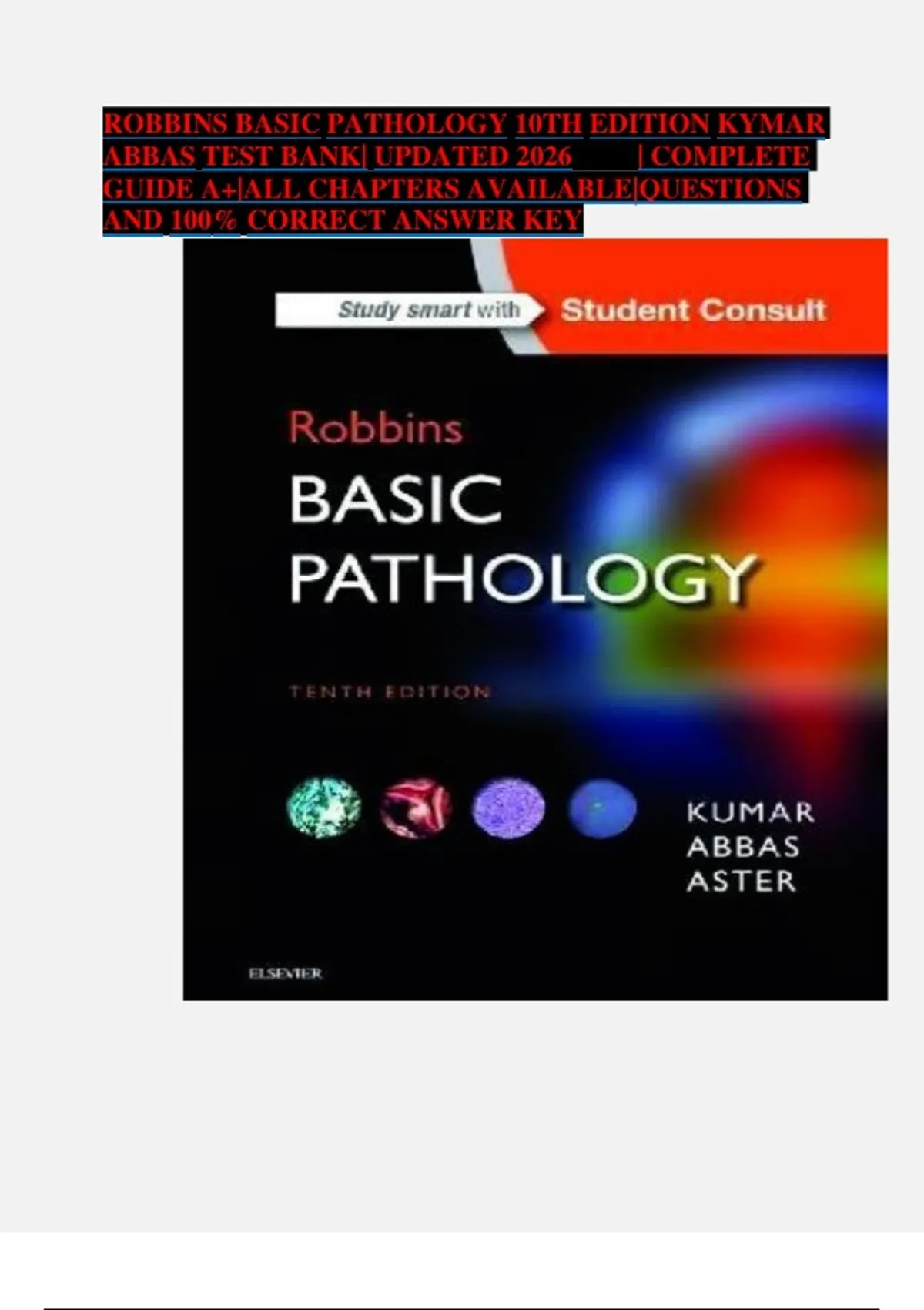Robbins Basic Pathology – 10th Edition (Kumar, Abbas & Aster) | Complete 2026 Test Bank With Correct Answers | All Chapters Included