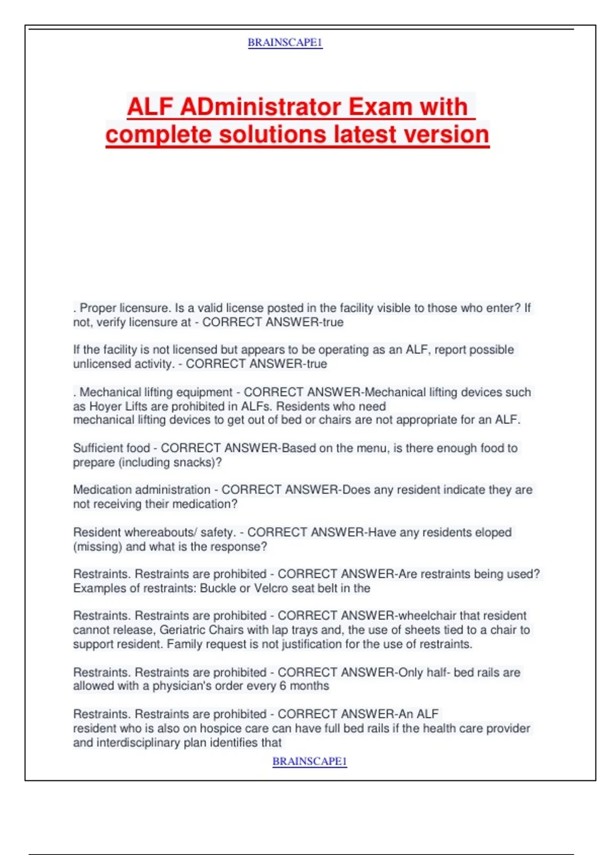 Restraints. Restraints are prohibited - CORRECT ANSWER-An ALF