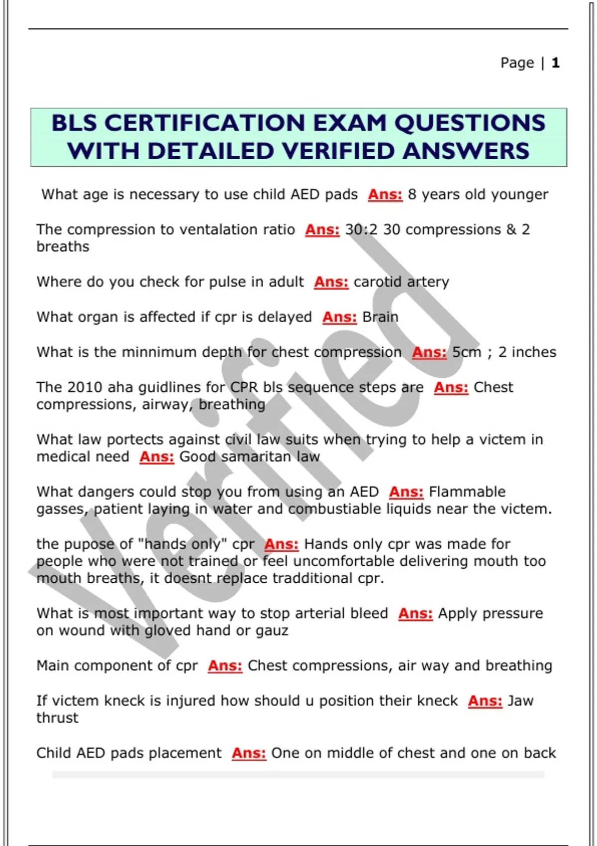 BLS CERTIFICATION EXAM QUESTIONS