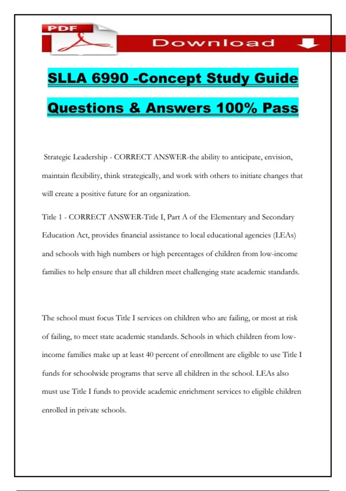 SLLA 6990 -Concept Study Guide Questions & Answers 100% Pass