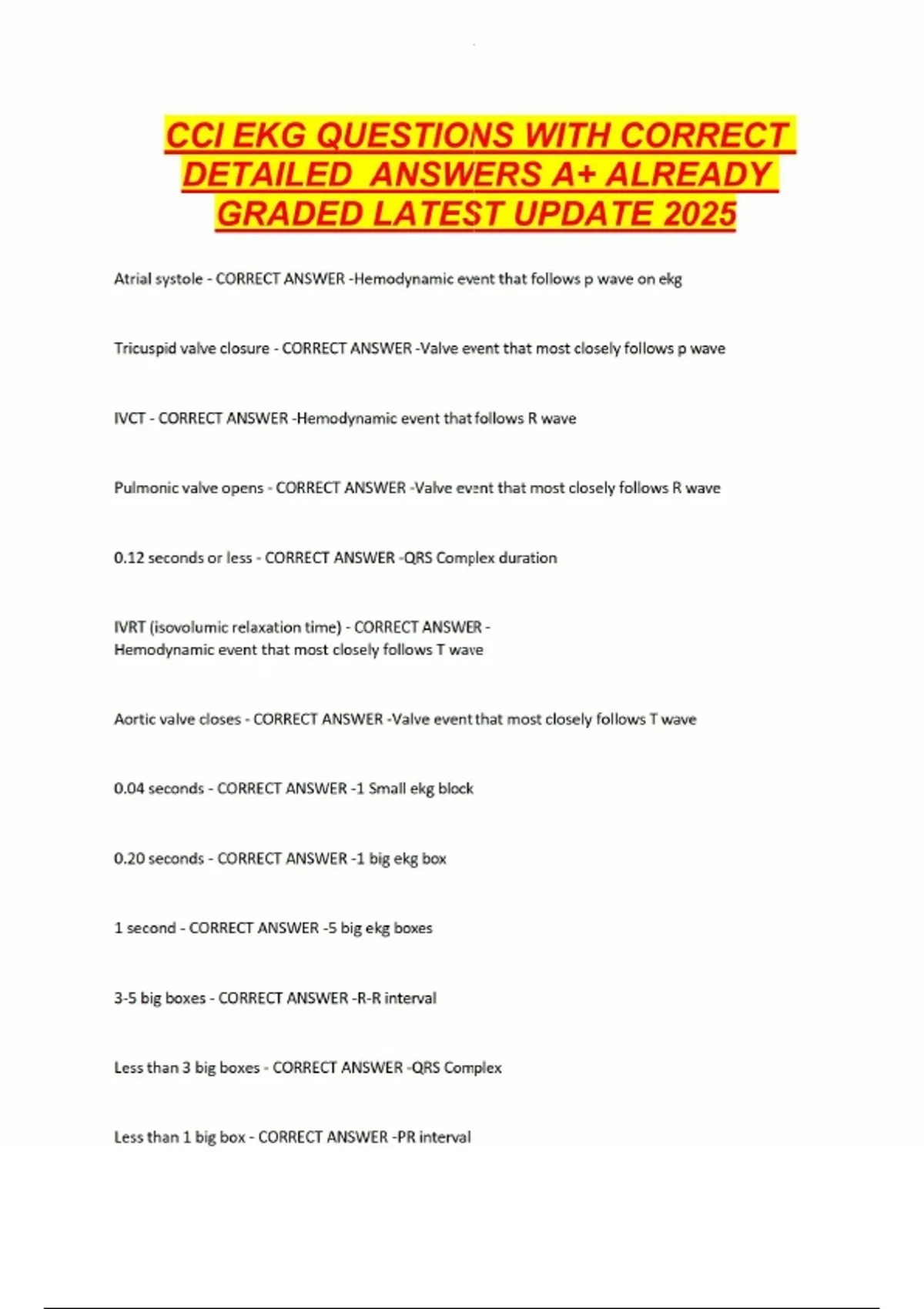 CCI EKG QUESTIONS WITH CORRECT DETAILED ANSWERS A+ ALREADY GRADED LATEST UPDATE 2025 CCI EKG QUESTIONS WITH CORRECT DETAILED ANSWERS A+ ALREADY GRADED LATEST UPDATE 2025CCI EKG QUESTIONS WITH CORRECT DETAILED ANSWERS A+ ALREADY GRADED LATEST UPDATE 2025CCI EKG QUESTIONS WITH CORRECT DETAILED ANSWERS A+ ALREADY GRADED LATEST UPDATE 2025