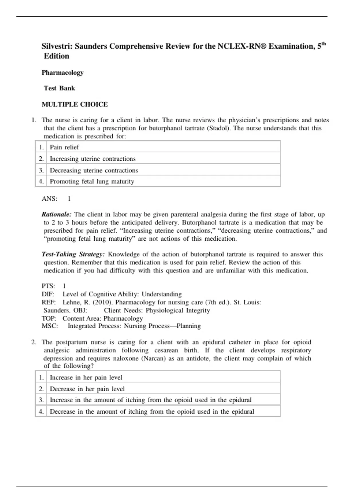 1. The nurse is caring for a client in labor. The nurse reviews the physician’s prescriptions and notes