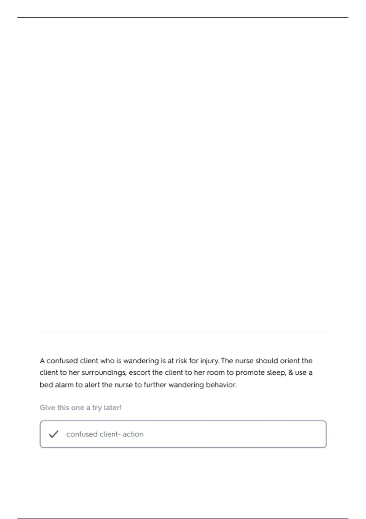 client to her surroundings, escort the client to her room to promote sleep, & use a