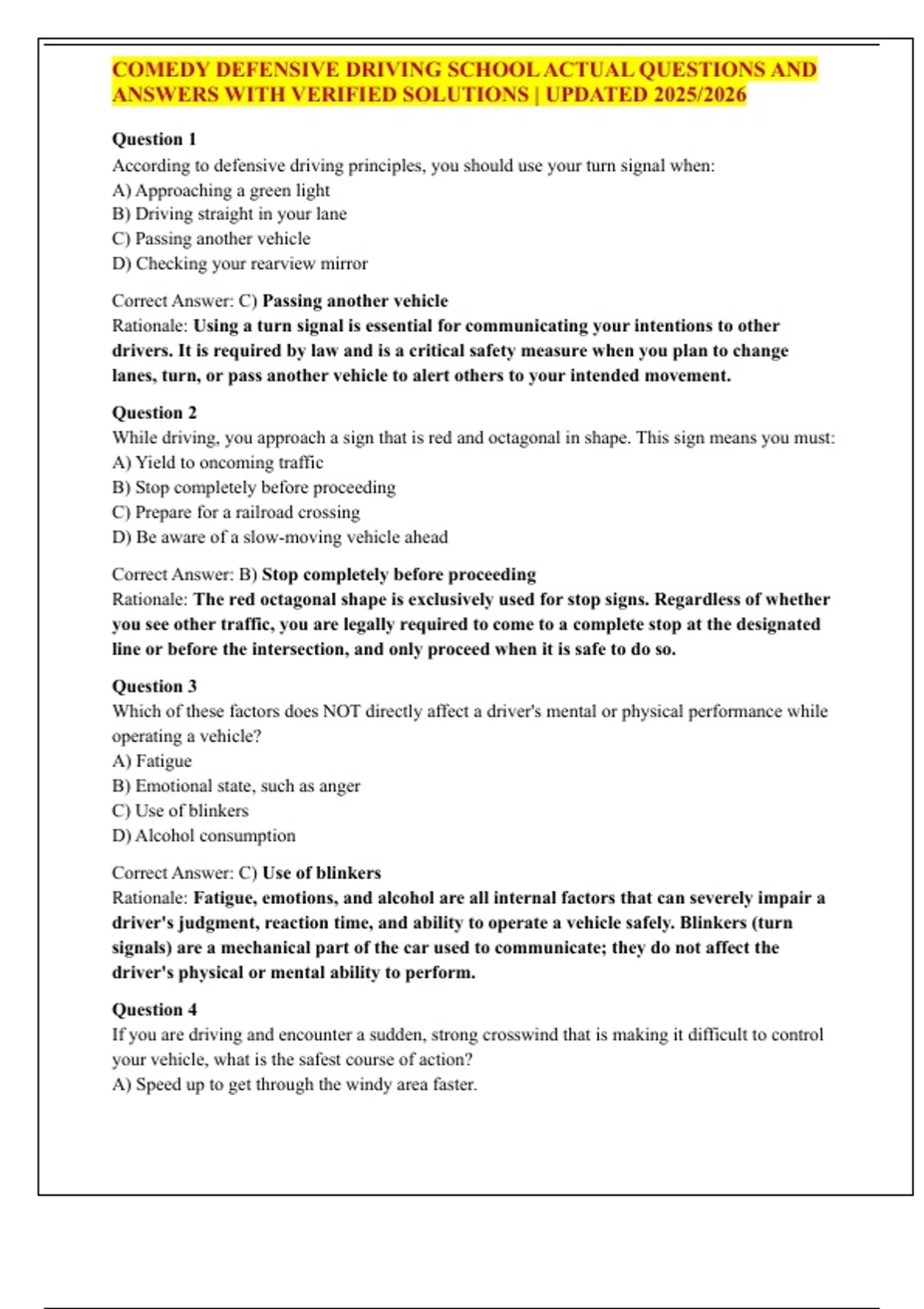 COMEDY DEFENSIVE DRIVING SCHOOL ACTUAL QUESTIONS AND