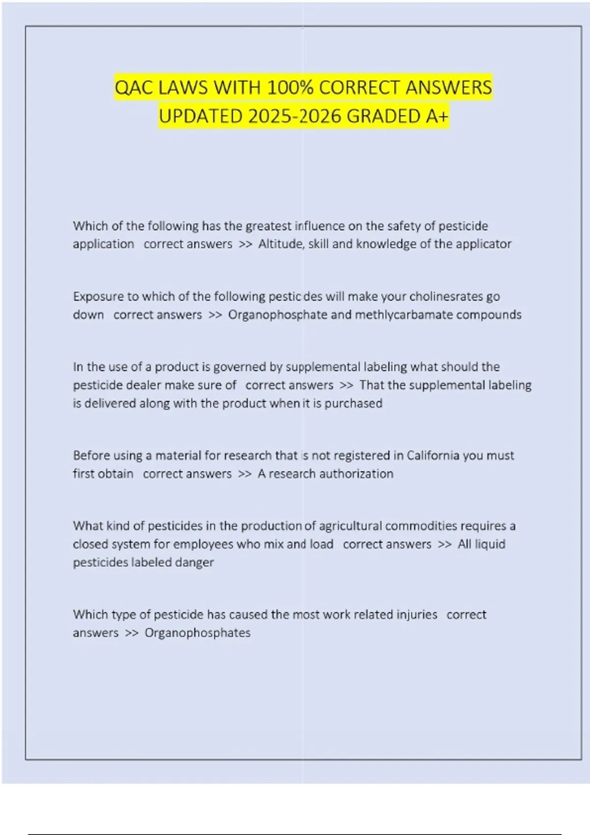QAC LAWS WITH 100% CORRECT ANSWERS UPDATED GRADED A+