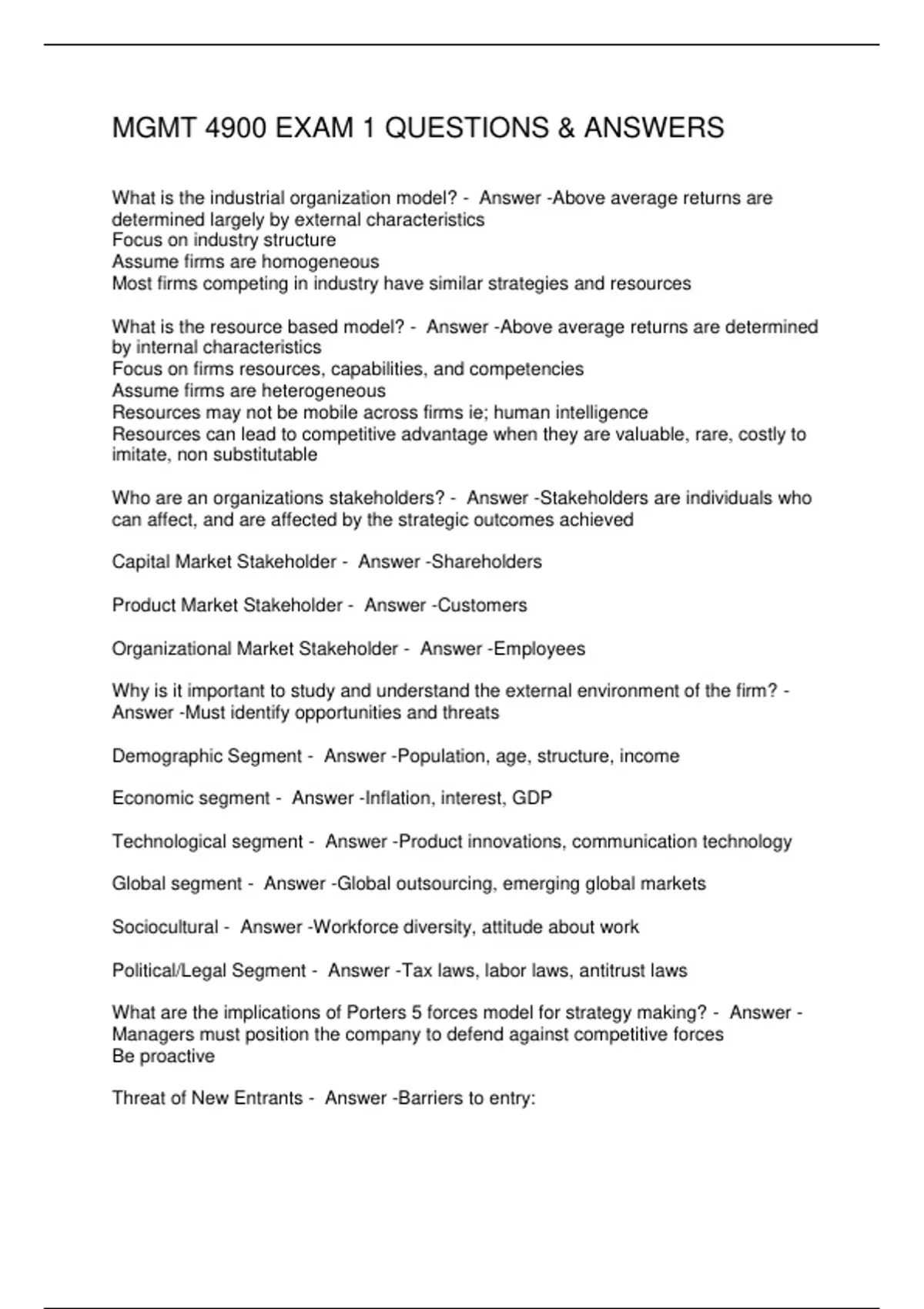 MGMT 4900 EXAM 1 QUESTIONS & ANSWERS