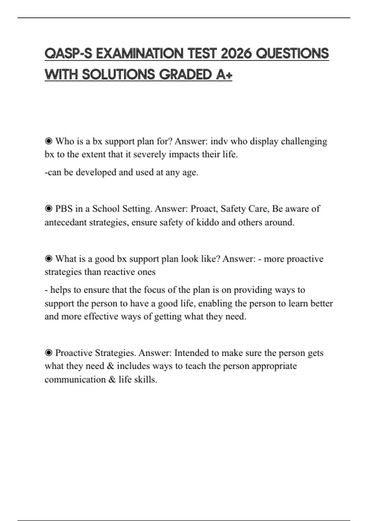 ◉ Who is a bx support plan for? Answer: indv who display challenging