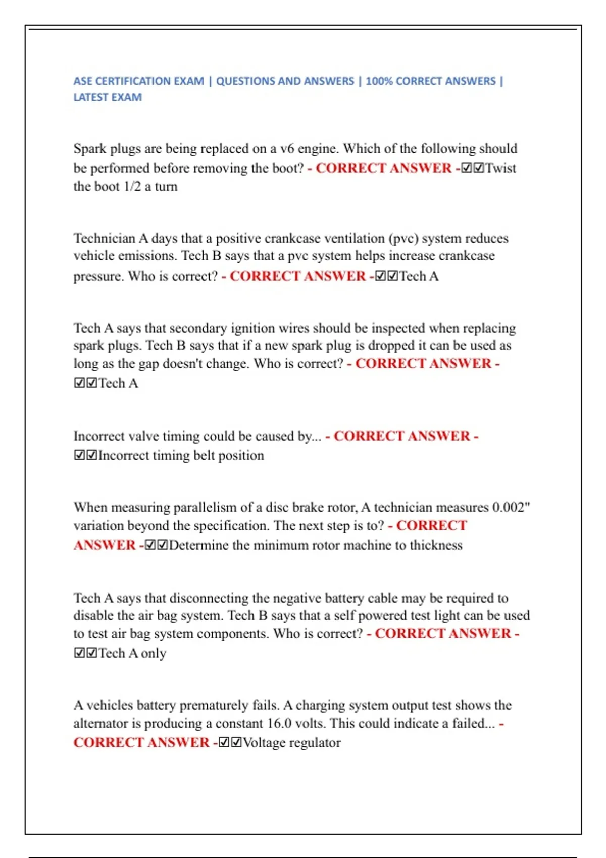 ASE CERTIFICATION EXAM | QUESTIONS AND ANSWERS | 100% CORRECT ANSWERS |