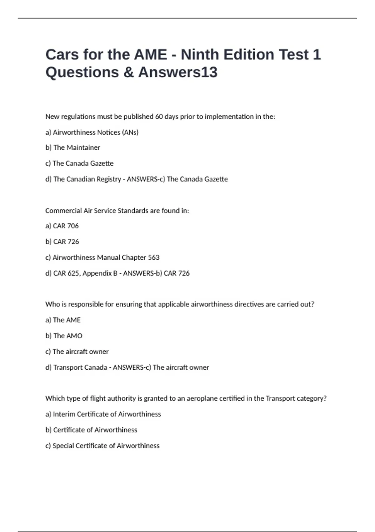 Cars for the AME - Ninth Edition Test 1 Questions & Answers