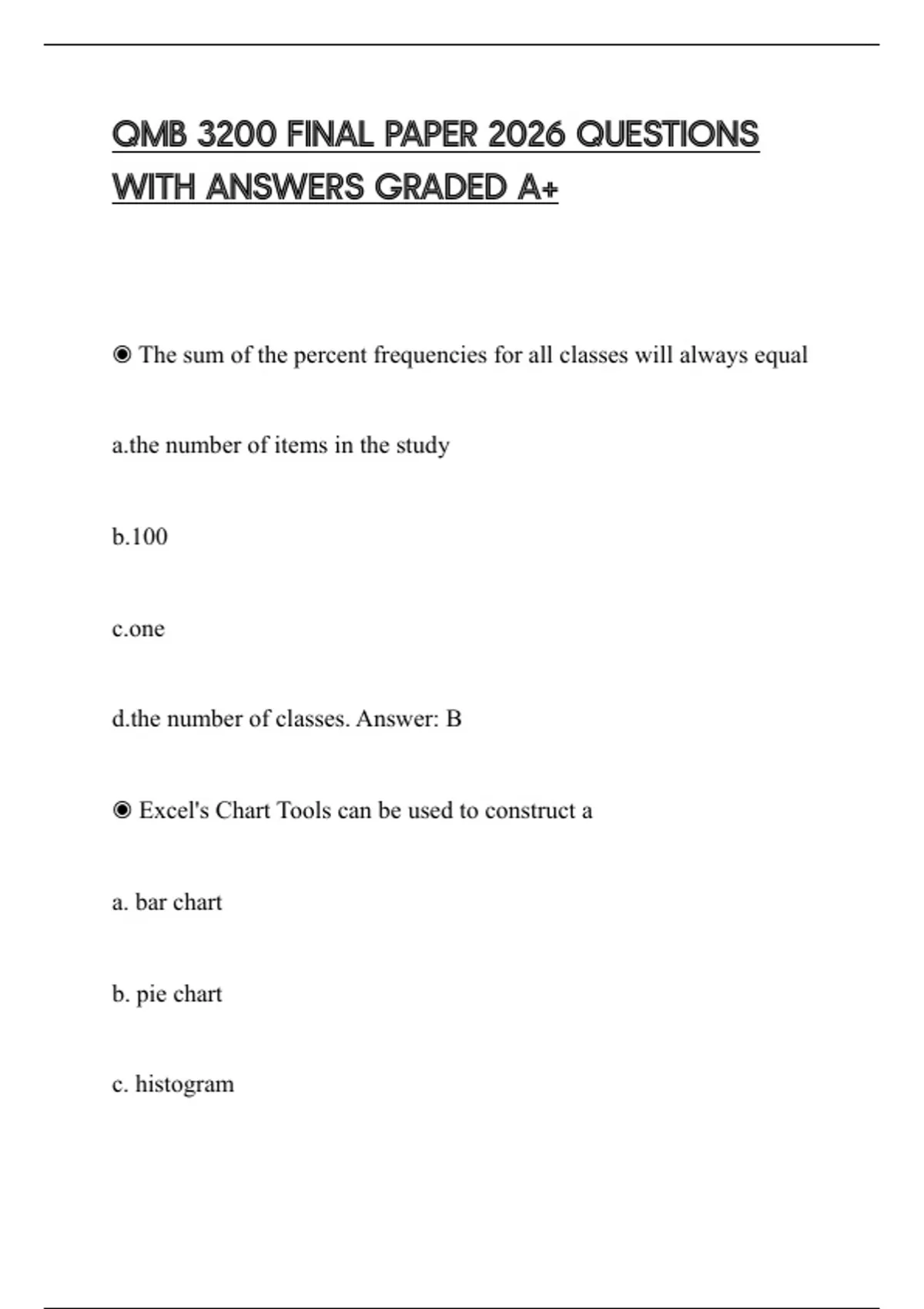 QMB 3200 FINAL PAPER 2026 QUESTIONS WITH ANSWERS GRADED A+