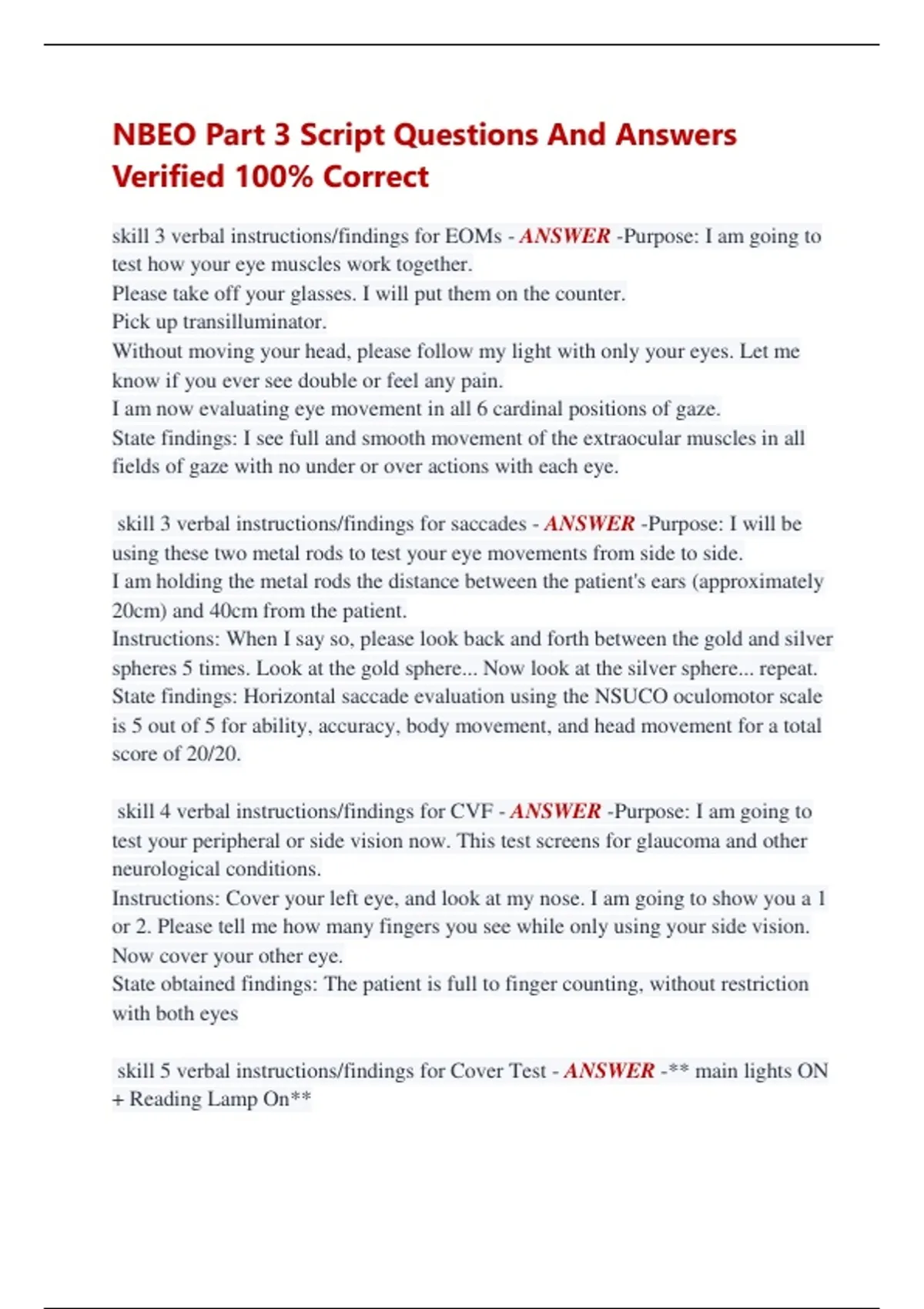 NBEO Part 3 Script Questions And Answers Verified 100% Correct
