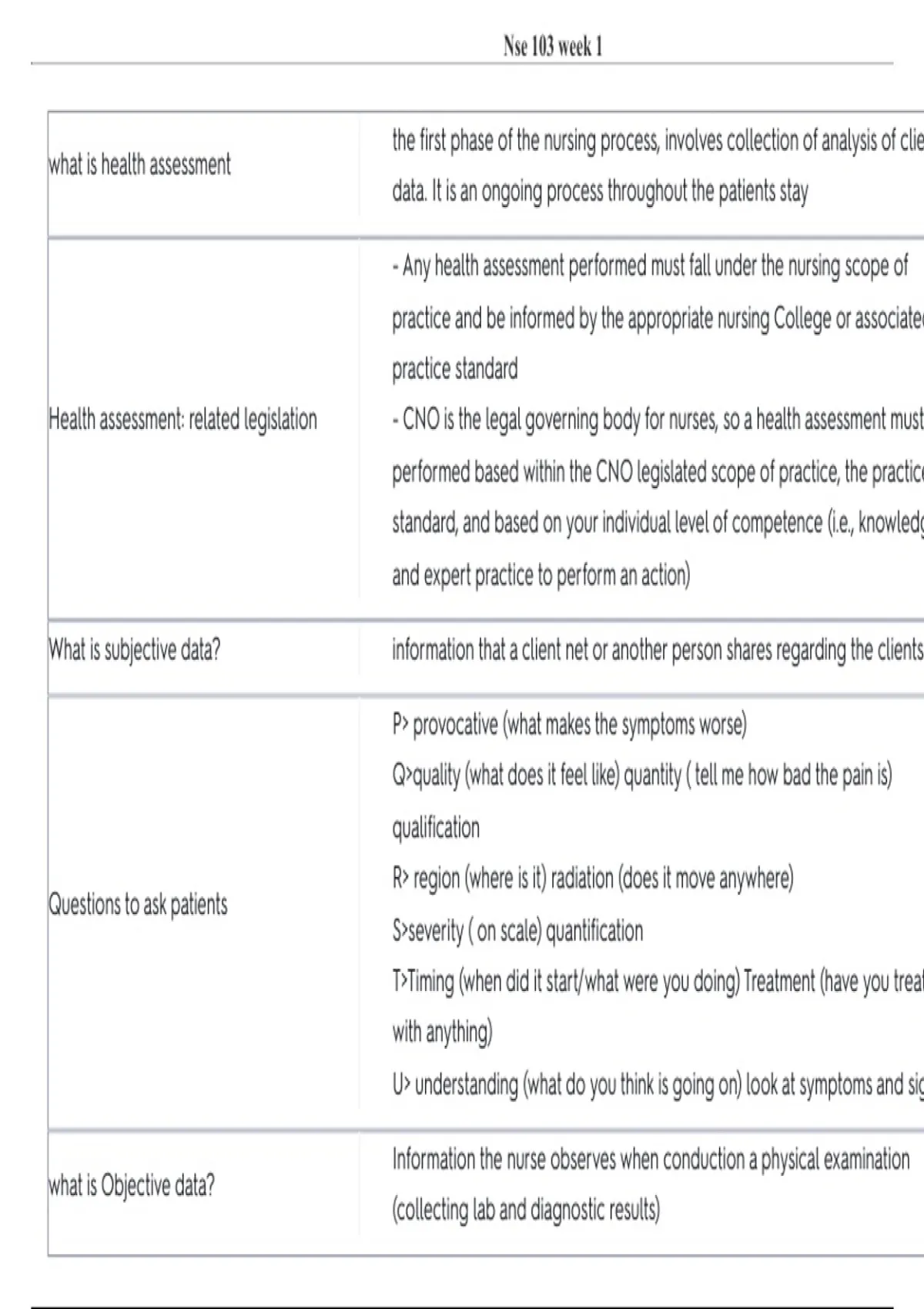 Health assessment: related legislation - CNO is the legal governing body for nurses, so a health assessment must