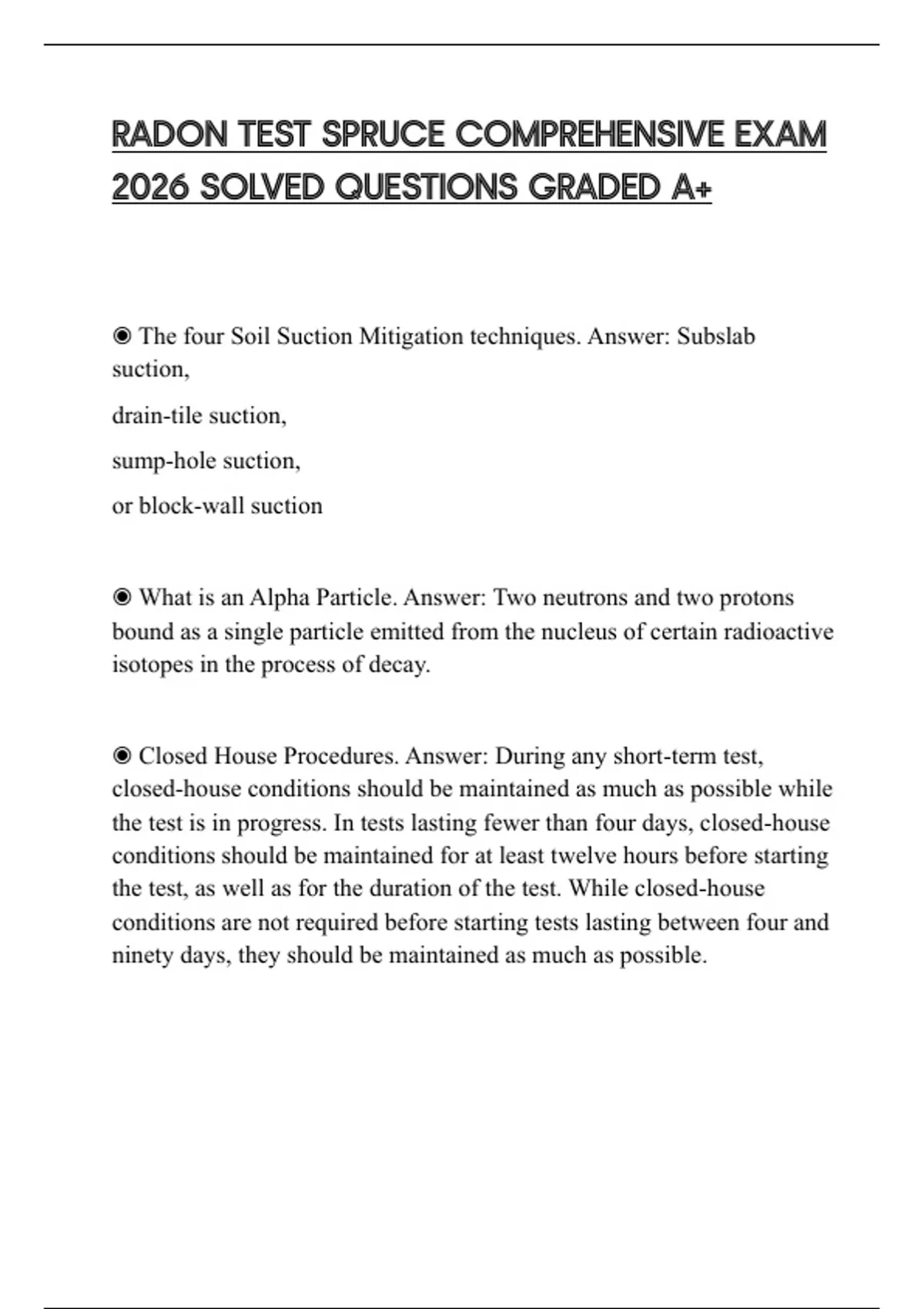 RADON TEST SPRUCE COMPREHENSIVE EXAM 2026 SOLVED QUESTIONS GRADED A+