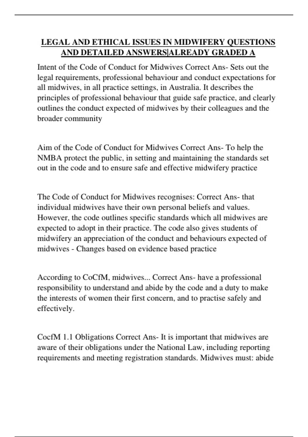 Aim of the Code of Conduct for Midwives Correct Ans- To help the