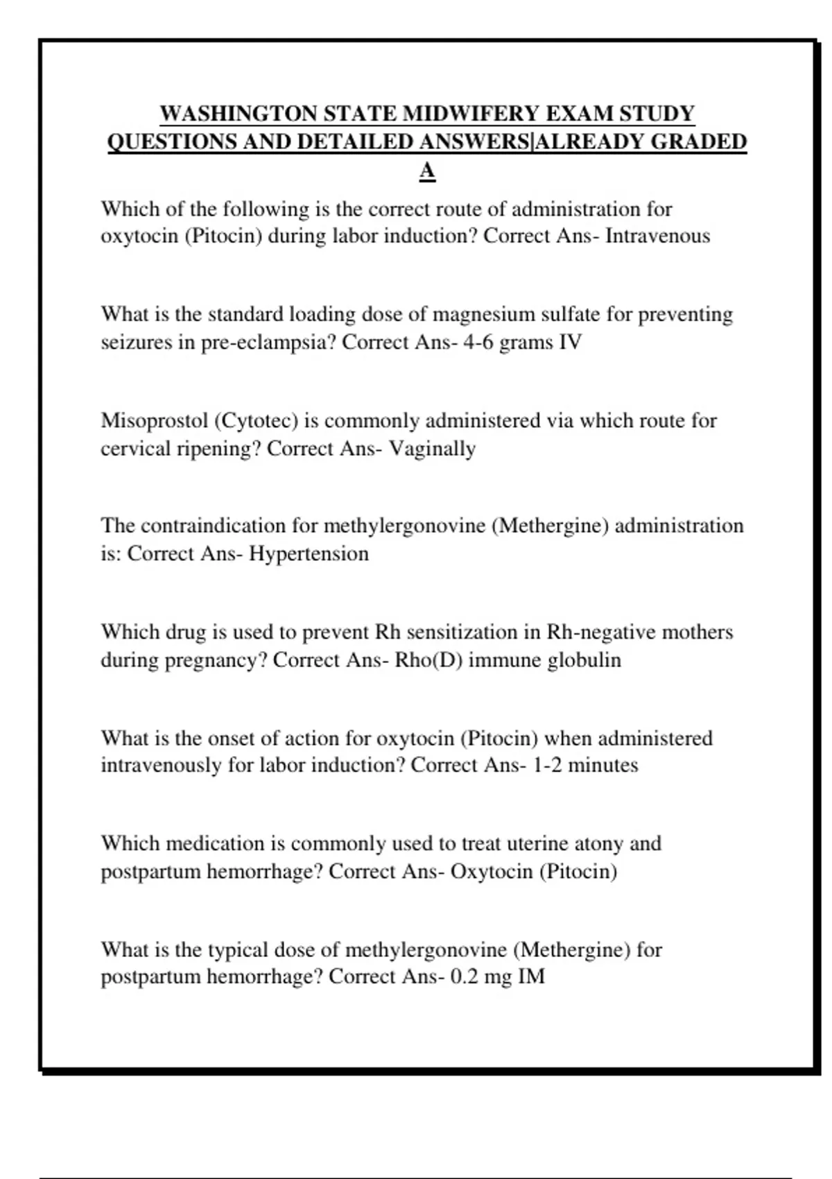 postpartum hemorrhage? Correct Ans- Oxytocin (Pitocin)