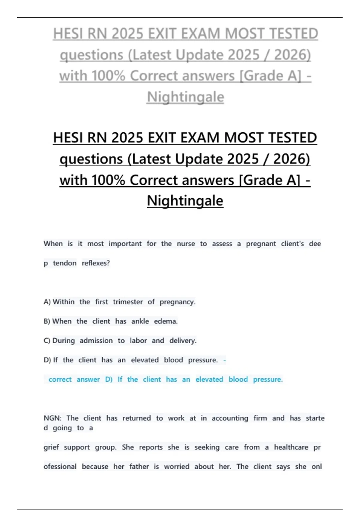HESI RN 2025 EXIT EXAM MOST TESTED questions (Latest Update 2025 / 2026) with 100% Correct answers [Grade A] - Nightingale