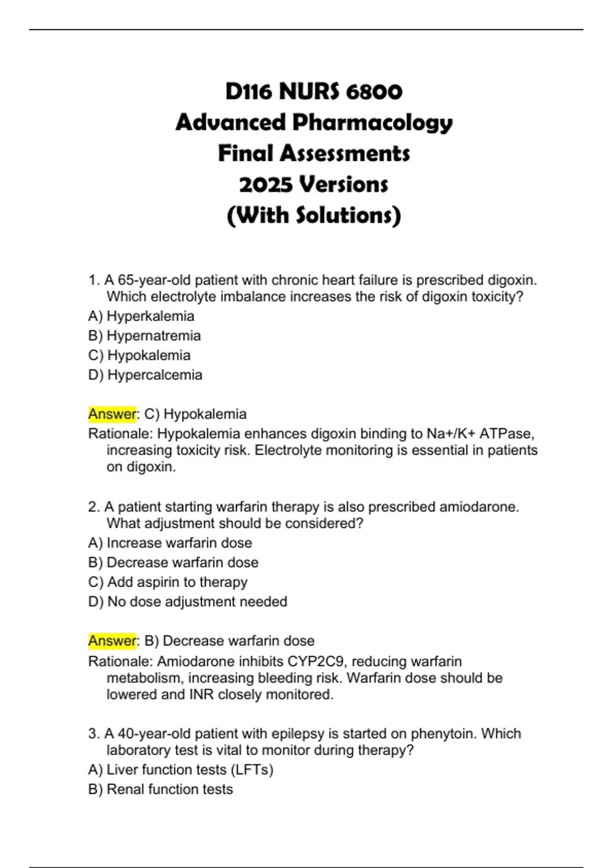 1. A 65-year-old patient with chronic heart failure is prescribed digoxin.