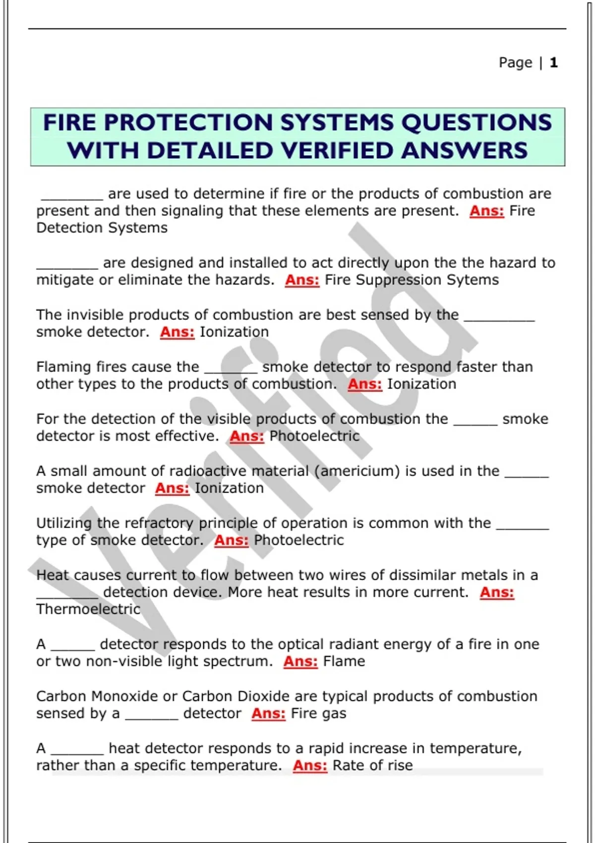 FIRE PROTECTION SYSTEMS QUESTIONS