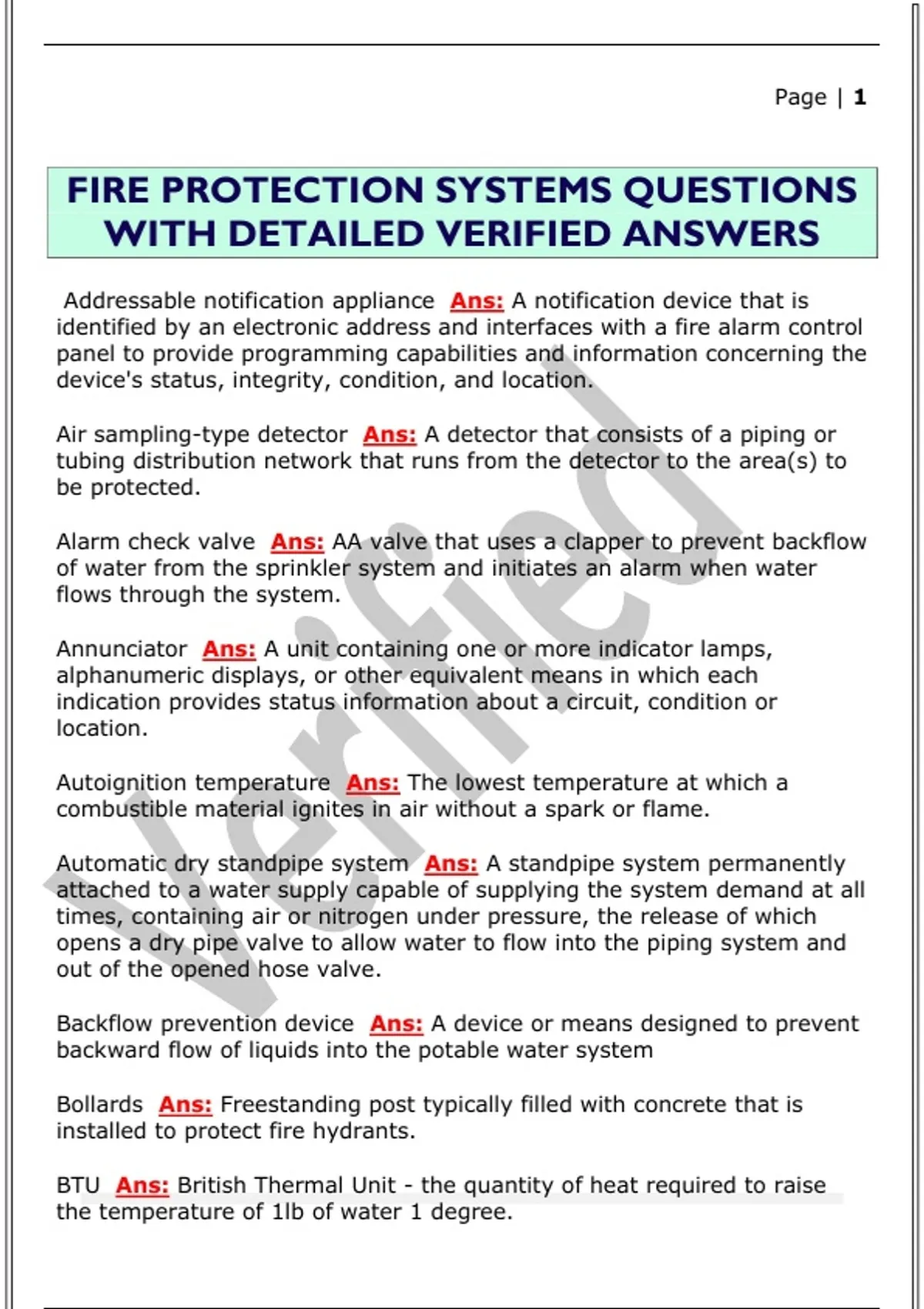 FIRE PROTECTION SYSTEMS QUESTIONS