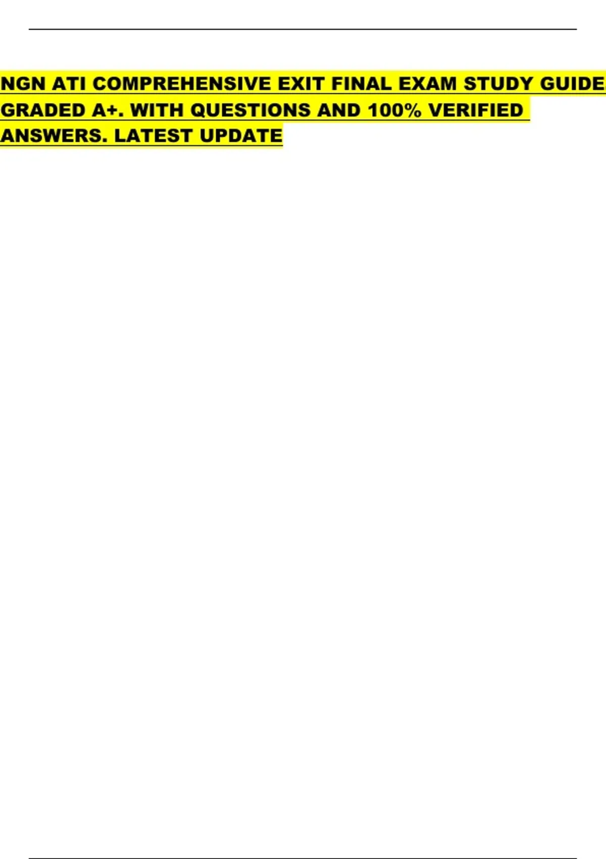 NGN ATI COMPREHENSIVE EXIT FINAL EXAM STUDY GUIDE. GRADED A+. WITH QUESTIONS AND 100% VERIFIED ANSWERS. LATEST UPDATE NGN ATI COMPREHENSIVE EXIT FINAL EXAM STUDY GUIDE. GRADED A+. WITH QUESTIONS AND 100% VERIFIED ANSWERS. LATEST UPDATE NGN ATI COMPREHENSIVE EXIT FINAL EXAM STUDY GUIDE. GRADED A+. WITH QUESTIONS AND 100% VERIFIED ANSWERS. LATEST UPDATE